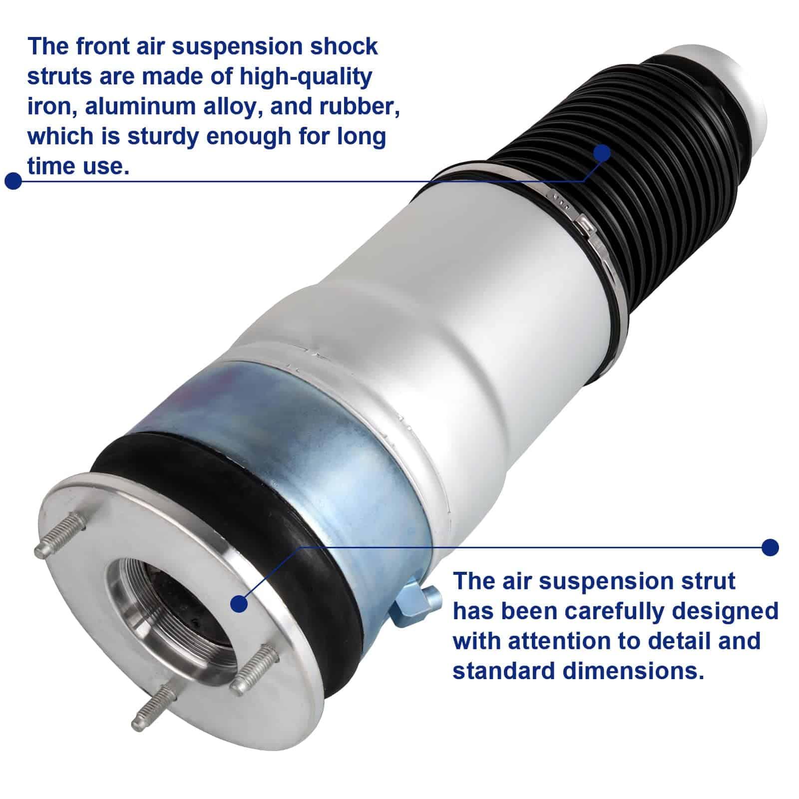 3. Material Premium Las bolsas de aire de amortiguación de suspensión están hechas de hierro de alta calidad, aleación de aluminio y caucho, lo suficientemente resistente para un uso prolongado. La suspensión de aire puede comprimir el aire en un recipiente cerrado elástico para que pueda funcionar de manera efectiva.