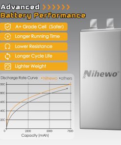 3. Bien equilibrado, mayor vida útil del ciclo y tiempo de funcionamiento, menor resistencia – La batería de coche RC Nihewo proporciona muy buen balance(cell voltage difference is within 0.03V), densidad de energía(354Wh/kg), mayor vida útil del ciclo(350 veces), tiempo de funcionamiento más largo(+12%). Nuestras células de batería RC ultra duraderas y de calidad premium cuentan con un cable de silicona suave de 10AWG y son de baja resistencia(-4%) para proporcionar un rendimiento óptimo y alimentar tu modelo de RC.