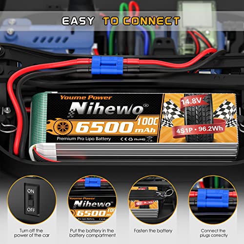 Nihewo Batería Lipo 4S 14.8V 6500mAh 100C con Conector EC5