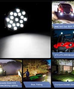 Especificación: Potencia LED: 51W (17 x 3W LED de alta intensidad) Patrón de Haz: Haz de inundación, luz amplia que cubre todo el carril, extremadamente útil durante los días de niebla Voltaje de Entrada: 9-30V DC (compatible con vehículos de 12V, 24V) Vida Útil de Trabajo: Más de 50,000 horas Temperatura de Trabajo: -40 a 85 grados Celsius Temperatura de Color del LED: Blanco Puro 6000K-6500K Material: Perfil de Aluminio 6063, Chips LED de alta calidad, Lente PMMA Tasa Impermeable: IP67; Impermeable, a prueba de polvo, a prueba de golpes y anticorrosivo. Certificaciones: CE, FCC y RoHS Aplicaciones: Iluminación Todoterreno: Jeep, 4×4, Coche, ATV, UTV, SUV, Camión, Remolque, Montacargas, Tren, Barco, Autobús, Iluminación Exterior, etc. Otros tipos de Iluminación: Excavadora, Bulldozer, Rodillo de Carretera, Grúa, Tractor, Cosechadora, Taladro de Granos, Quitanieves, Camión de Bomberos, Vehículo de Rescate, Camping, Minería, Iluminación de Construcción, etc. Iluminación Doméstica: Jardín, Patio Trasero, Garaje, Iluminación Interior. (Nota: Utiliza un transformador/conversor de voltaje para convertir el AC 110-120V a DC 12V para uso en interiores.) Nota: Son piezas de repuesto. NO aprobado por el D.O.T. No utilizar si se requiere el D.O.T. Solo para uso todoterreno. Antes de instalar este producto, comprueba las leyes y regulaciones estatales/provinciales y locales/municipales. ¿Por qué elegir la luz Nilight? – Producto y servicio de alta calidad – Garantía de 12 meses para la barra de luces genuina de Nilight – La opción de la mayoría de los clientes – Más opciones de productos para elegir