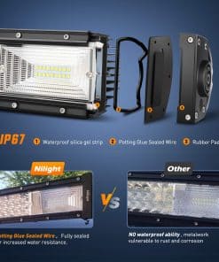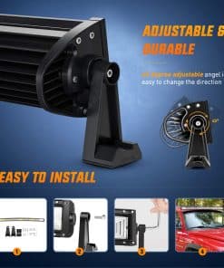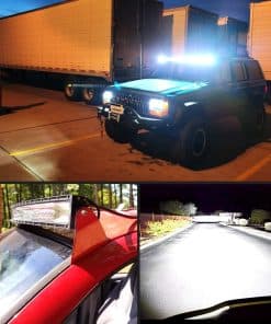 Especificaciones: Patrón de Haz: Luz de Inundación y Punto Combinado Voltaje de Entrada: 9-30V DC (compatible con vehículos de 12V, 24V) Vida útil de Trabajo: Más de 30,000 horas Temperatura de Trabajo: -40~85 grados Celsius Temperatura de Color LED: Blanco Puro 6000K-6500K Material: Perfil de Aleación de Aluminio 6063, Chips LED de Alta Calidad, Lente de PC Tasa Impermeable: IP67; Impermeable, a prueba de polvo, a prueba de golpes y anticorrosivo. Aplicaciones: Iluminación Fuera de Carretera: Jeep, 4×4, Auto, ATV, UTV, SUV, Camión, Remolque, Montacargas, Tren, Barco, Autobús, Iluminación Exterior, etc. Otros Iluminación: Excavadora, Buldózer, Rodillo de Carretera, Grúa, Tractor, Cosechadora, Taladro de Granos, Quitanieves, Camión de Bomberos, Vehículo de Rescate, Iluminación Minera, Iluminación de Construcción, etc. Iluminación para el Hogar: Jardín, Patio Trasero, Garaje, Iluminación Interior. (Nota: Utilice un transformador/conversor de voltaje para convertir de CA 110-120V a CC 12V para uso en interiores). Nota: Son piezas de mercado secundario. NO aprobado por el Departamento de Transporte. No use si se requiere aprobación por el Departamento de Transporte. Para uso fuera de carretera solamente. Antes de instalar este producto, verifique las leyes y regulaciones de su estado/provincia y municipio/localidad.