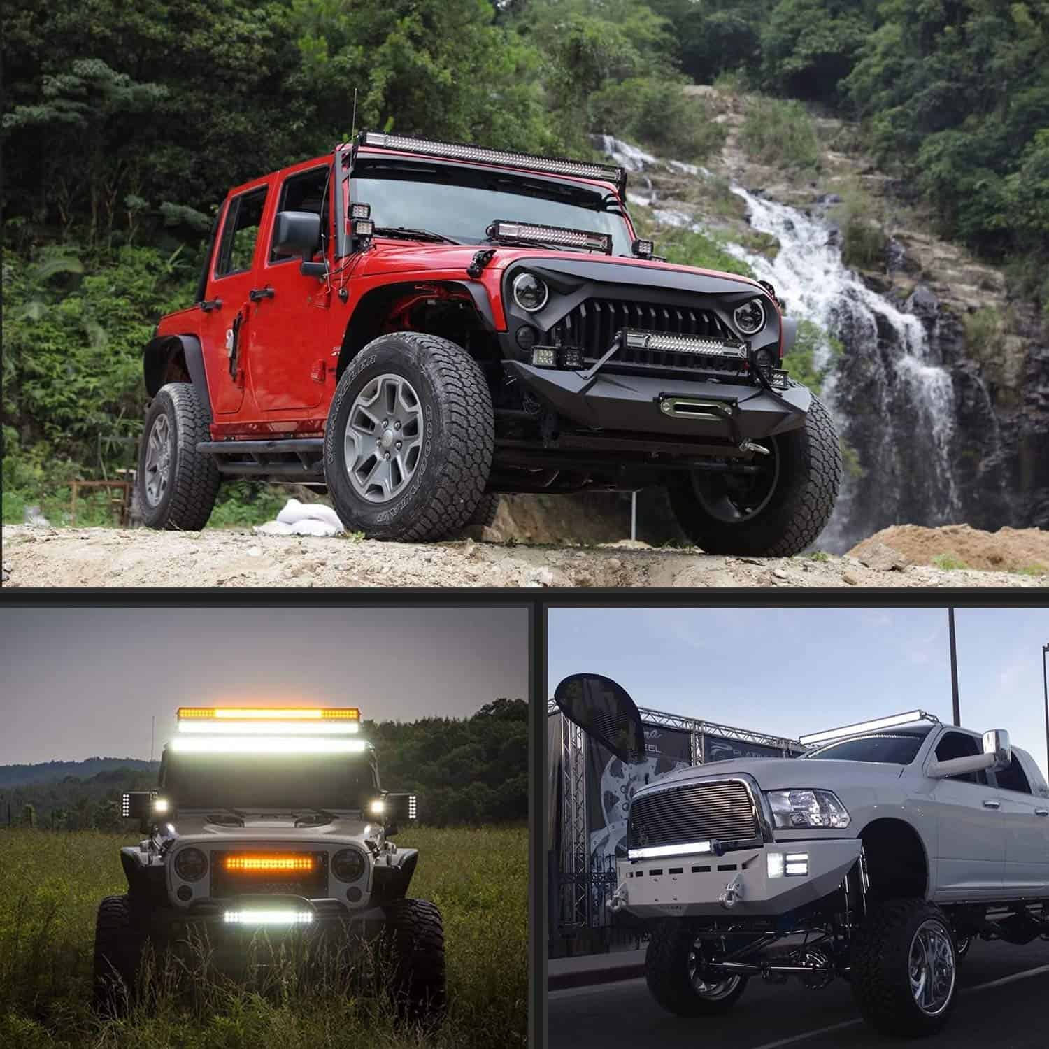 Especificación: Patrón de haz: Combo de Spot de inundación Voltaje de entrada: 9-30V DC (se adapta a vehículos de 12V, 24V) Vida útil de trabajo: Más de 30,000 horas Temperatura de trabajo: -40 ~ 85 grados Celsius Temperatura de color LED: Blanco puro 6000K-6500K Material: Perfil de aleación de aluminio 6063, Chips Led de alta calidad, Lente PC Tasa impermeable: IP67; Impermeable, a prueba de polvo, a prueba de terremotos y anticorrosivo Aplicaciones: Iluminación todoterreno: Jeep, 4×4, Coche, ATV, UTV, SUV, Camión, Remolque, Montacargas, Tren, Barco, Autobús, Iluminación exterior, etc. Otra iluminación: Excavadora, Tractor, Rodillo de camino, Grúa, Tractor, Cosechadora, Taladro de grano, Quitanieves, Camión de bomberos, Vehículo de rescate, Iluminación minera, Iluminación de construcción, etc. Iluminación doméstica: Jardín, Patio trasero, Garaje, Iluminación interior. (Nota: Use un transformador / convertidor de voltaje para convertir el AC 110-120V a DC 12V para uso en interiores.) Nota: Son piezas de repuesto. NO aprobado por D. O. T. No lo use si se requiere D. O. T. Solo para uso fuera de carretera. Antes de instalar este producto, consulte las leyes y regulaciones estatales / provinciales y locales / municipales. Iluminación todoterreno: Jeep, 4×4, Coche, ATV, UTV, SUV, Camión, Remolque, Montacargas, Tren, Barco, Autobús, Iluminación exterior.
