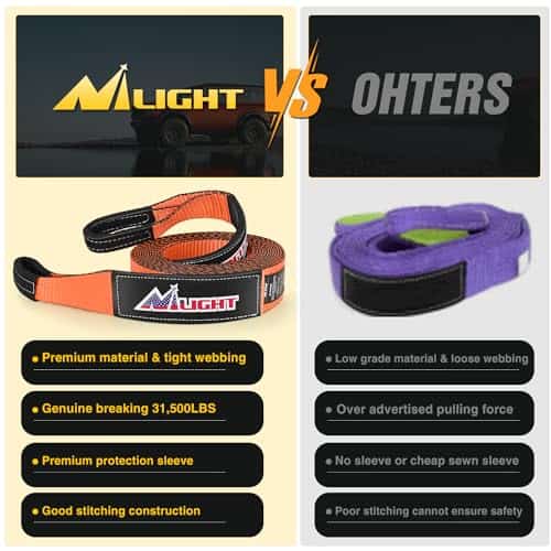 Nilight 3″ x 30′ Correa de Remolque de Recuperación Probada