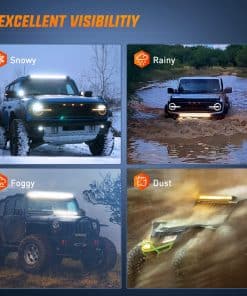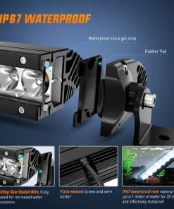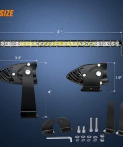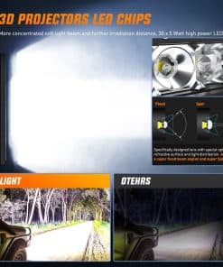 Especificaciones: Potencia LED: 150W (30 x 5W/pcs High Intensity LEDs) Patrón de haz: Haz Spot & Flood (La mejor opción como luces de niebla) Voltaje de funcionamiento: 9-30V DC (Apto para vehículos de 12V, 24V, automóviles, camiones, etc.) Vida útil: 30,000 horas o más Tasa impermeable: IP67 Temperatura de color: 6000K Lumen: 14500LM Material: Perfil de aluminio 6063, Chips LED de alta calidad, Lente de PC Aplicaciones: