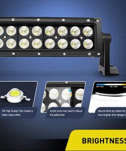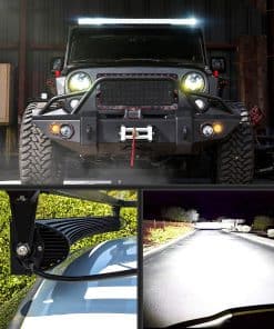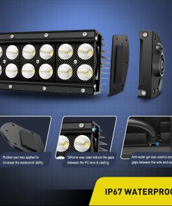 Especificación: Potencia LED: 312W (104 x 3W LED de alta intensidad) Patrón de haz: Combo de haz de inundación y manchas Voltaje de entrada: 12-30V CC (para vehículos de 12V, 24V) Vida útil de trabajo: Más de 30,000 horas Temperatura de trabajo: -40~85 grados Celsius Temperatura de color LED: Blanco puro 6000K-6500K Material: Perfil de aluminio 6063, Chips LED de alta calidad, Lente de PC Índice de impermeabilidad: IP67; Resistente al agua, a prueba de polvo, a prueba de golpes y anticorrosivo. Certificaciones: CE, FCC y RoHS Aplicaciones: Iluminación Todo Terreno: Jeep, 4×4, Coche, ATV, UTV, SUV, Camioneta, Remolque, Montacargas, Tren, Barco, Autobús, Iluminación exterior, etc. Otra Iluminación: Excavadora, Buldócer, Rodillo de camino, Grúa, Tractor, Cosechadora, Sembradora de granos, Quitanieves, Camión de bomberos, Vehículo de rescate, Camping, Iluminación de construcción, etc. Iluminación del Hogar: Jardín, Patio trasero, Garaje, Iluminación interior. (Nota: Utilice un transformador/conversor de voltaje para convertir el AC 110-120V a DC 12V para uso interior.) Nota: Son piezas de posventa. NO están aprobadas por D.O.T. No usar si se requiere D.O.T. Solo para uso fuera de carretera. Antes de instalar este producto, verifique las leyes y regulaciones estatales/provinciales y locales/municipales. El voltaje de funcionamiento es de 12-30V CC. Si el voltaje de entrada es inferior a 12V, algunos Chips LED podrían no entrar en estado de funcionamiento.