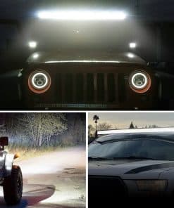 Aplicaciones: Iluminación Off Road: Jeep, 4×4, Coche, ATV, UTV, SUV, Camión, remolque, montacargas, tren, barco, autobús, iluminación exterior, etc. Otro tipo de Iluminación: Excavadora, Bulldozer, Compactador, Grúa, Tractor, Cosechadora, Sembradora de Granos, Quitanieves, Camión de Bomberos, Vehículo de Rescate, Camping, Iluminación de Minería, Construcción, etc. Iluminación Doméstica: Jardín, Patio Trasero, Garaje, Iluminación Interior. (Nota: Use un transformador/conversor de voltaje para convertir de AC 110-120V a DC 12V para uso interior). Nota: Son piezas de repuesto. NO aprobado por D.O.T. No utilizar si se requiere el cumplimiento de D.O.T. ¡Solo para uso fuera de carretera!