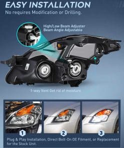 5. Incluye: 1 Par de Faros delanteros para 2007 2008 2009 Altima Sedán 4 puertas (lado del conductor y lado del pasajero), 1x Manual del Usuario, garantía de 12 meses de Nilight