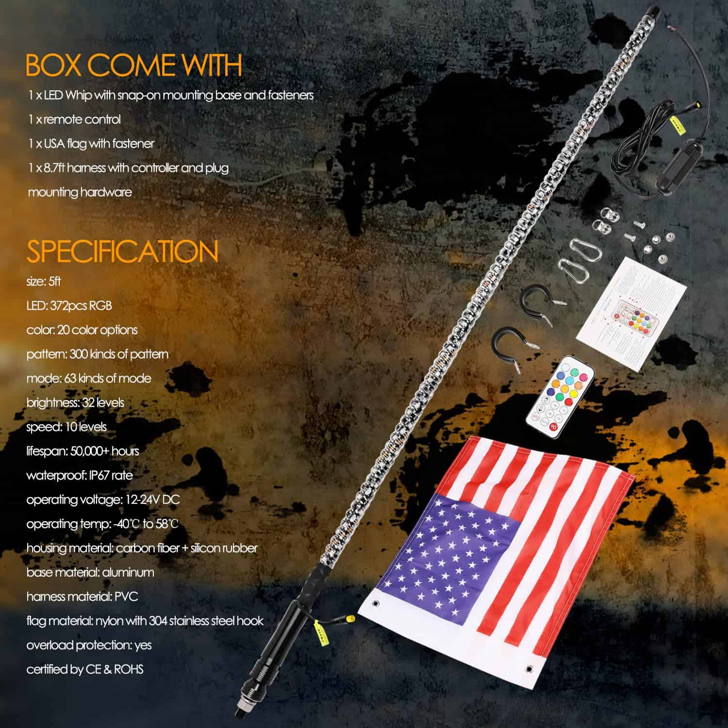 Nirider 5ft LED Whip Light con Bandera Control Remoto