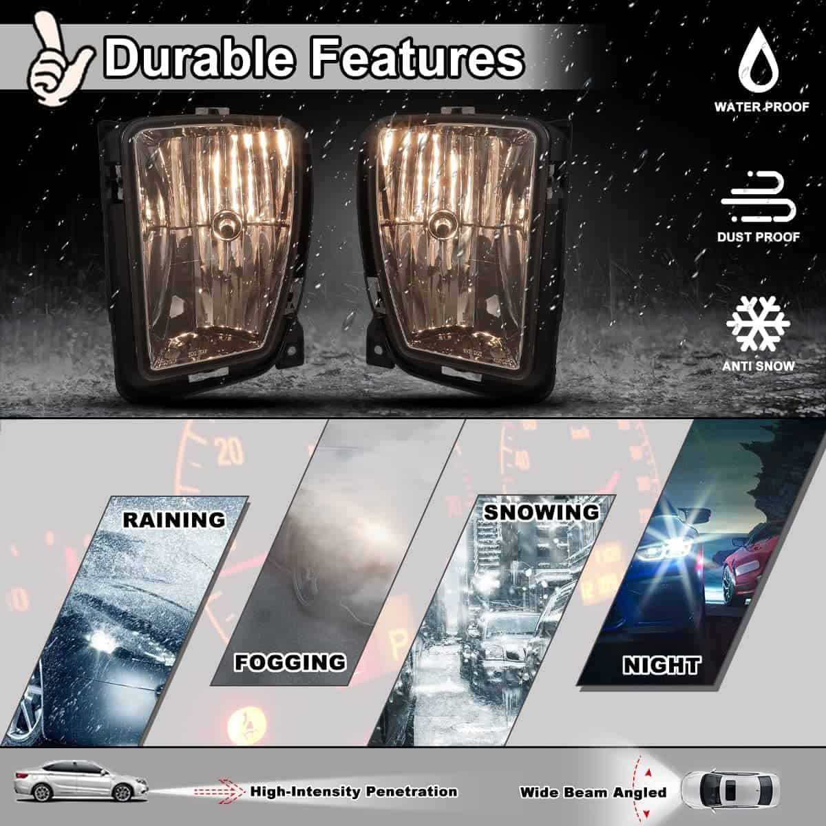 NIXON OFFROAD es una fábrica especializada en la producción y diseño de lámparas automotrices. Nuestras principales categorías son faros delanteros, faros traseros y faros de niebla. La gran fortaleza y escala de nuestra fábrica. Además, las lámparas de automóviles que producimos incluyen una variedad de modelos de varias marcas de automóviles. Además de producir lámparas originales de alta calidad, diseñaremos lámparas complejas y únicas. ¿Qué esperas? ¡Dale a tu auto una nueva experiencia de modificación DESDE EL FARO DE NIEBLA ESPECIFICACIÓN DEL FARO DE NIEBLA: Fuente de luz: Bombilla halógena Tipo: 9006 12V 51W (Incluida) Acabado de color: Carcasa cromada negra / Lente transparente Material de la lente: Lente de PC Estándar: Cumplimiento DOT / SAE Reemplaza la Parte Original (OE): L: 68104821AC, 196040001, 68104821AB, 68104821AD R: 68104820AC, 196039001, 68104820AB, 68104821AD ABPA Partslink: L: CH2592147 R: CH2593147 FARO DE NIEBLA DE ALTA CALIDAD: Mejora la visibilidad ~ Mantén la seguridad del conductor durante la noche, lluvia intensa, nieve o niebla densa. Súper Impermeable ~ Carcasa duradera diseñada con diseño sellante para evitar que la humedad, el polvo y la arena caigan dentro del faro de niebla. Penetración Fuerte ~ Modo de proyección preciso. COMPATIBILIDAD CON FARO DE NIEBLA: Para DODGE 2013-2018 Dodge Ram 1500 Pickup 2019 Dodge Ram 1500 Classic Body FARO DE NIEBLA DE REEMPLAZO PAQUETE: Un par de faros de niebla (Lado izquierdo del conductor y lado derecho del pasajero) Nota: No incluye kit de arnés de cableado y interruptor universal.