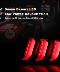 Características: Luces LED completas, luces de señal de giro secuenciales – Todas las luces están equipadas con LEDs, las luces garantizan una iluminación brillante, especialmente las luces de señal de giro secuenciales, no solo para mejorar las capacidades de iluminación de su vehículo y su apariencia general, sino que también hacen que la conducción sea más segura. Carcasa sellada completa, duradera y a prueba de mal tiempo – La lente y la carcasa de las luces están fabricadas con materiales de ABS de alta calidad para garantizar una alta durabilidad y calidad. Servicio y soporte Envío desde California, Equipo de soporte 7/12 Nuestros productos se envían todos desde el almacén de EE. UU. y elegiremos el servicio de envío más adecuado y rápido según su ubicación para usted. Garantía de 1 año Se proporcionará una garantía limitada de 1 año a partir de la fecha de compra que cubre el mal funcionamiento del producto, excepto en las siguientes situaciones: Daño accidental. Daño causado por fenómenos naturales; Paquete 1 par de luces traseras Incluidas las partes del lado del pasajero y del conductor