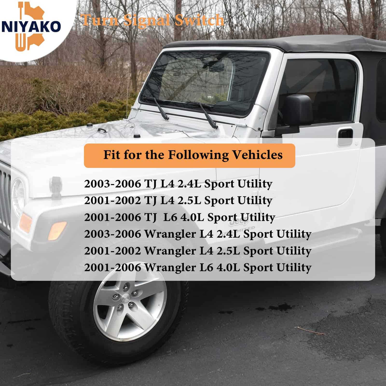1. Compatibilidad del Vehículo: Este interruptor de señal de giro es compatible con 2001 2002 2003 2004 2005 2006 J’-eep TJ Utility con luces antiniebla, 2001 – 2006 J’-eep Wrangler Utility con luces antiniebla.