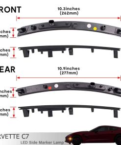 Conecta las luces de marcador lateral LED a los arneses de luces de giro para crear una función de señales de giro. ¡Esto mejorará la presencia lujosa de tu auto agregando características de seguridad y visibilidad adicionales! Las luces de marcador lateral LED ámbar claro están diseñadas para adaptarse al Chevrolet Corvette C7 del 2014 al 2019. ¡Dale a tu Chevrolet Corvette C7 luces de marcador lateral LED mejoradas para una apariencia moderna y dinámica, así como mejorada seguridad, visibilidad y estilo de moda por la noche! Descripción de las luces de marcador lateral LED del Chevrolet C7 Corvette del 2014 al 2019: Características: Color de la lente: Lente ahumado Color de la luz: Luces de marcador lateral LED ámbar delanteras Luces de marcador lateral LED rojas traseras . La lente está hecha de plástico PC anti-arañazos, que evita que la lente se desvanezca con la exposición prolongada. Cada luz de marcador lateral está hecha de chips LED SMD súper brillantes. Fácil instalación, no se necesita modificación, simplemente encastra directamente. La resistencia al agua se mejora con un tratamiento ultrasónico en la superficie de la lente. Compatibilidad: Compatible con Chevrolet Corvette C7 2014-2019 Reemplaza OEM GM 22771196 22771197 23210929 23210930. Paquete que incluye: 2x luces de marcador lateral delanteras 2x luces de marcador lateral traseras Compatible con: Chevrolet Corvette C7 2014-2019 Actualice el conjunto de lámparas original delanteras/traseras.