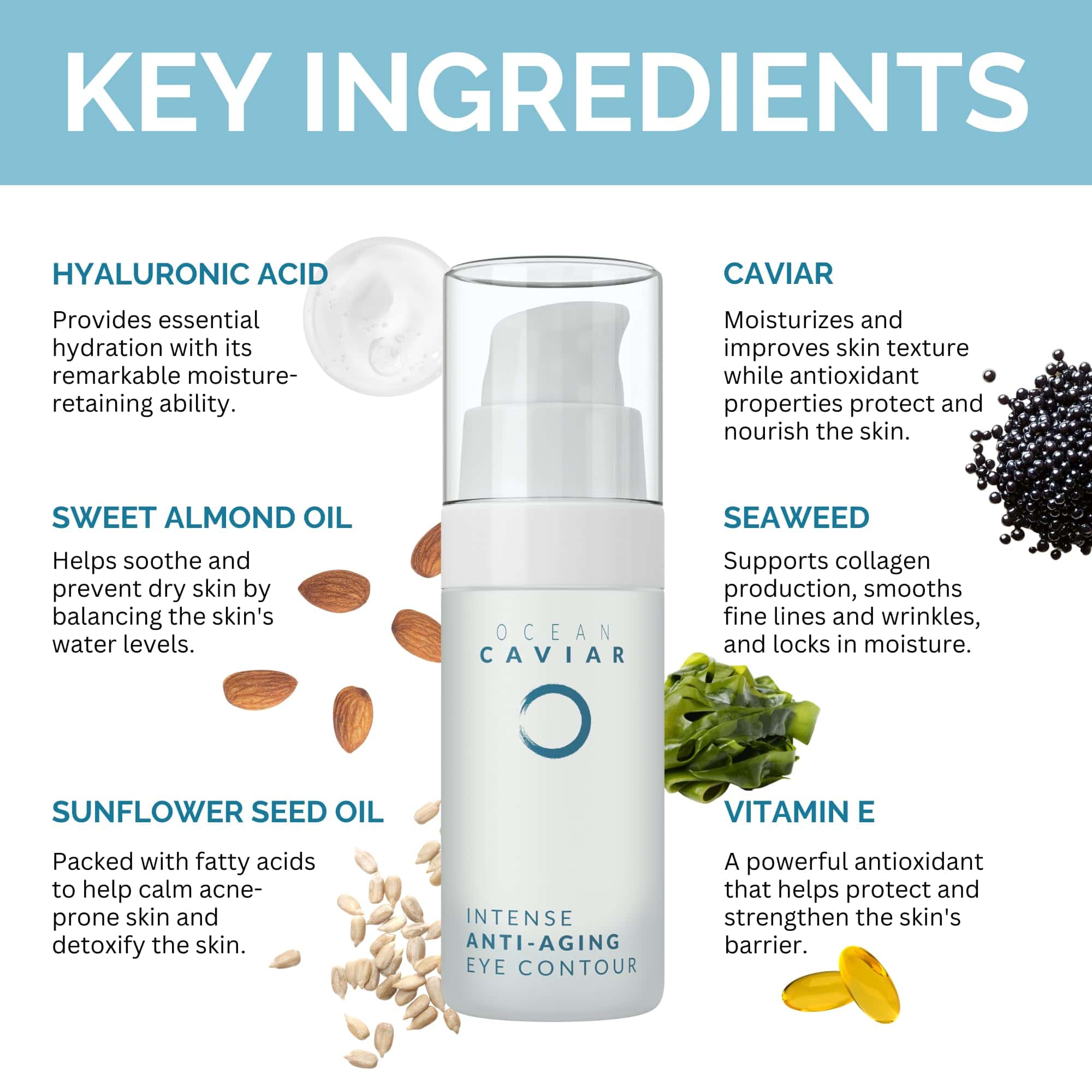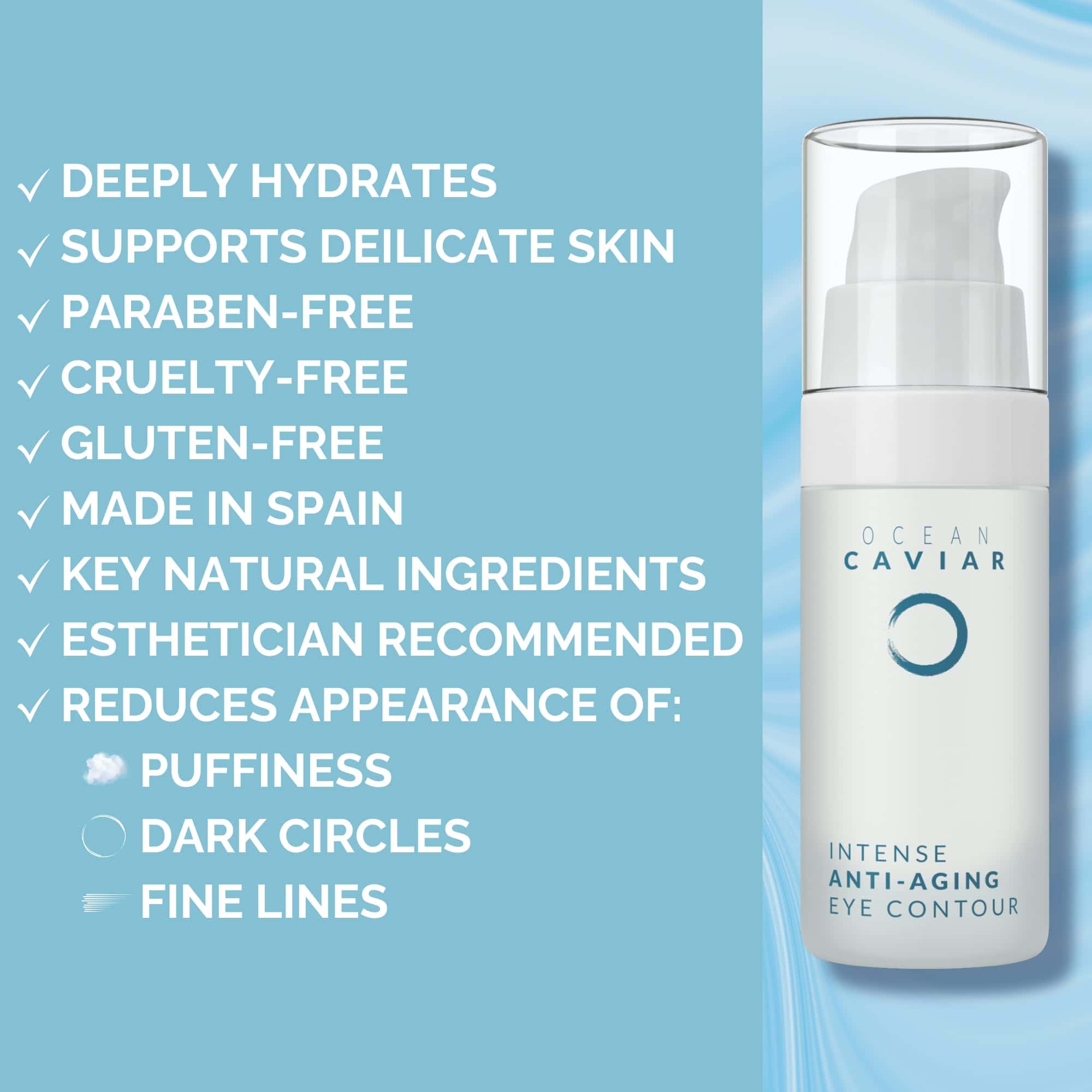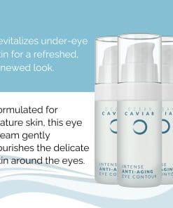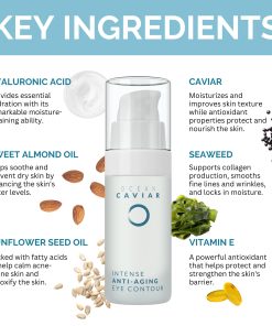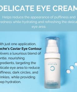 Una combinación de ingredientes naturales de alta calidad se unen para crear el contorno de ojos de caviar de Noche Y Día, que está especialmente diseñado para la piel madura. Con propiedades antienvejecimiento, esta crema única ayuda a reducir las arrugas, bolsas, ojeras y otros signos de envejecimiento alrededor de los ojos. El caviar, el ácido hialurónico y la vitamina E se combinan para proporcionar hidratación profunda y nutrición a la piel sensible del área de los ojos, manteniéndola firme, elástica y radiante. Además, esta crema es libre de parabenos, crueldad animal y gluten, lo que la convierte en una opción segura y limpia para el cuidado de la piel. Noche Y Día ofrece la garantía de devolución de dinero para que los clientes puedan probar el producto sin riesgos. Añade este contorno de ojos de caviar a tu rutina de cuidado de la piel para obtener resultados visibles y duraderos.