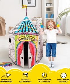 ¡Despierta la imaginación de tu hijo con la Carpa Circo Nonotree, un espacio de juego único y respetuoso con el medio ambiente que transforma cualquier área en un mundo de aventuras! Este maravilloso cartón de fácil montaje es perfecto para crear un escondite acogedor, un ring de circo o un sueño de cazatesoros. Con posibilidades infinitas, tu pequeño puede liberar su creatividad coloreando y personalizando su propio mundo mágico! Con un tamaño perfecto de W40″ x D34″ x H47″, esta tienda ofrece diversión tanto para juegos en interiores como en exteriores. No solo para niños, la Carpa Circo Nonotree reúne a toda la familia para horas de diversión sin pantallas. Imagina a tu familia reuniéndose para armar y decorar la tienda, compartiendo risas y trabajo en equipo en el camino. Esta actividad práctica fomenta la creatividad, la comunicación y el tiempo de calidad en familia perfecto para crear recuerdos que durarán mucho después de que termine la diversión. ¿Qué hace esta tienda aún más especial? Está fabricada con cartón 100% reciclable, lo que la convierte en una elección respetuosa con el medio ambiente que se alinea con un estilo de vida sostenible. Al elegir la Carpa Circo Nonotree, no solo estás dando a tu hijo un espacio de juego mágico, sino que también les estás enseñando la importancia de proteger el medio ambiente. Es la manera perfecta de combinar diversión y sostenibilidad en un paquete emocionante. ¿Buscas el regalo definitivo? La Carpa Circo Nonotree es ideal para cumpleaños, citas de juego o cualquier día que necesite una pizca de emoción. Ofrece a los niños horas de entretenimiento sin pantallas mientras exploran, crean y dejan volar su imaginación. Esta tienda no es solo un juguete es un regalo de creatividad, aventura y recuerdos duraderos. ¡Únete a la familia Nonotree hoy y trae a casa la Carpa Circo Nonotree! Observa cómo la imaginación de tu hijo se dispara mientras crean su propio mundo mágico, lleno de diversión, aprendizaje y juego respetuoso con el medio ambiente. ¡Compra tu Carpa Circo ahora y experimenta una aventura infinita, risas y creatividad!