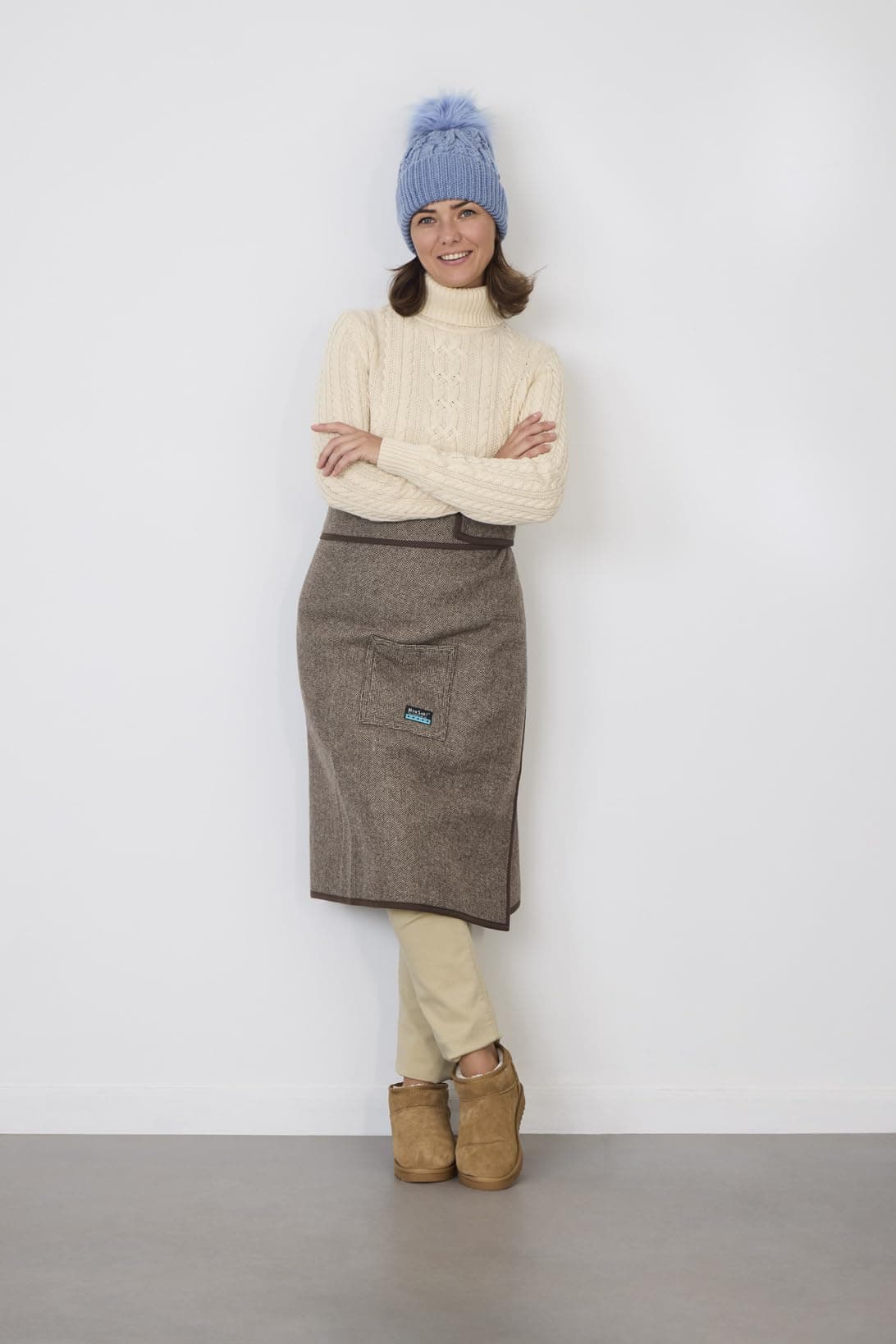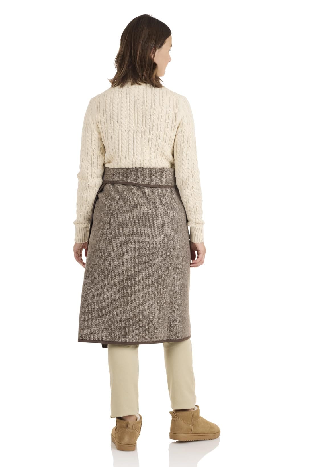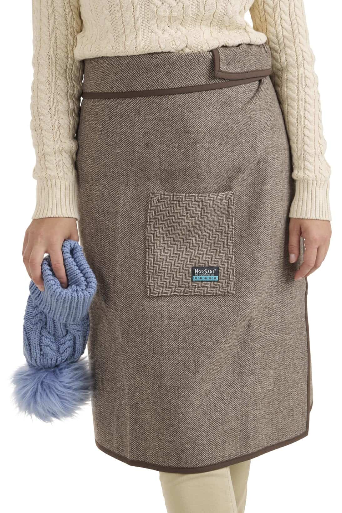 1. Un NorSari es un abrigo exterior de lana mezclada diseñado para ser una forma simple y elegante de mantenerse caliente. Se envuelve sobre su ropa y se mantiene unido con un cierre de velcro ajustable en la cintura. Funciona como una manta o cobija de tamaño versátil y conveniente. El bolsillo delantero es perfecto para un teléfono inteligente o llaves.