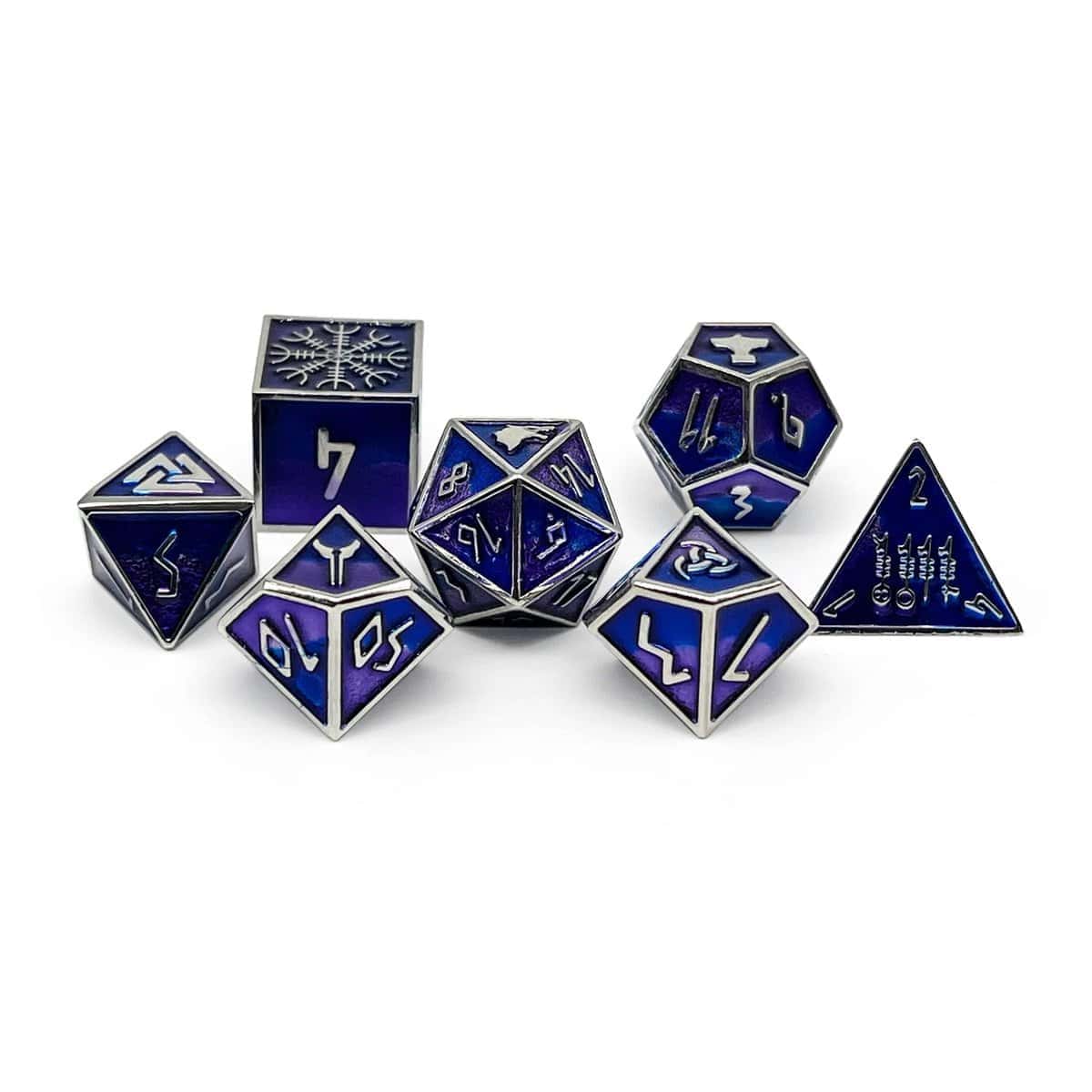 Emprende una odisea en el reino de los doppelg ngers con nuestro exclusivo conjunto de dados «Runas de Poder». Elaborados en aleación de zinc sólido, estos dados bañados en plata con un encantador relleno de esmalte morado reflejan la esencia de las misteriosas criaturas cambiantes que los inspiraron.