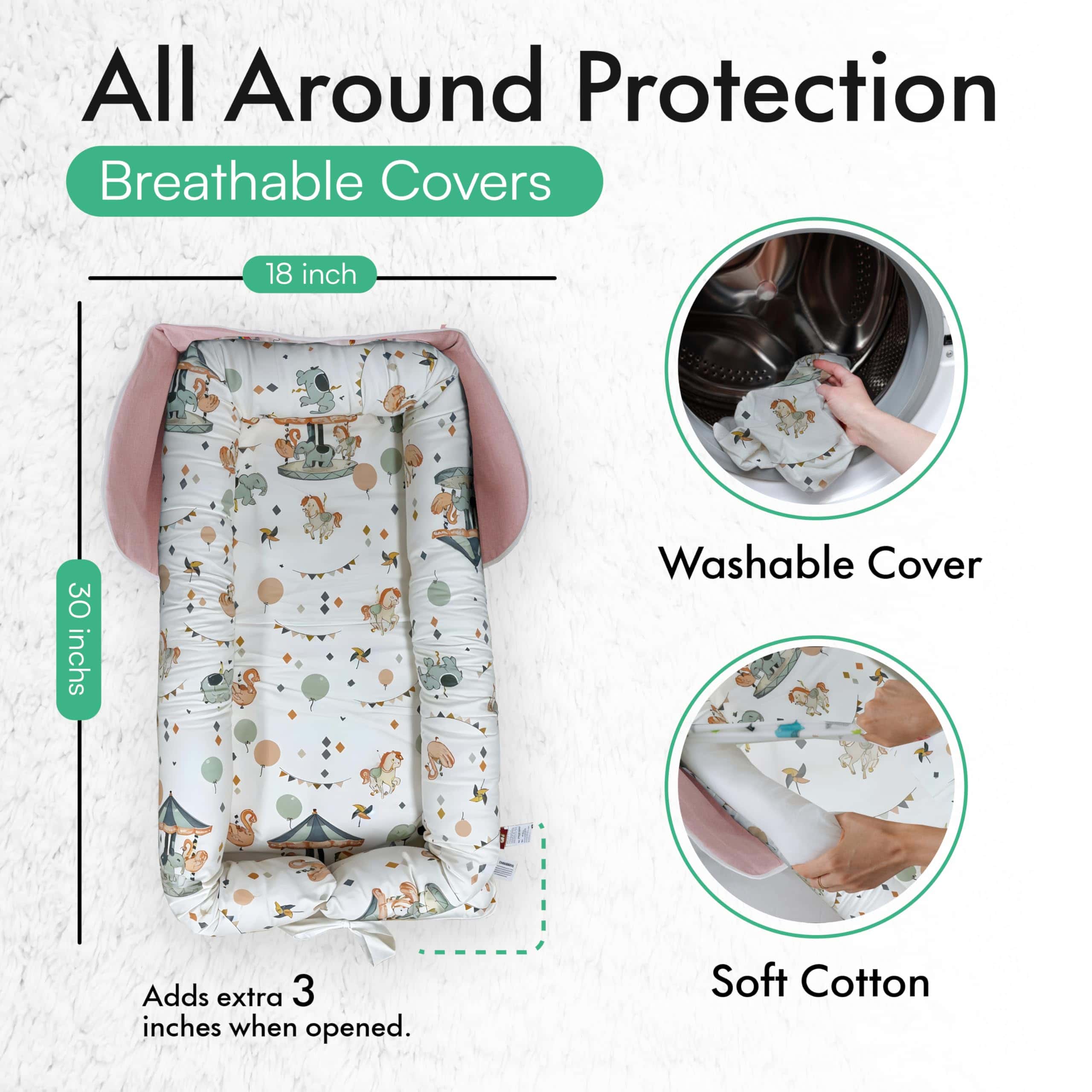 5. LAVABLE Y DURADERO – mantener el ambiente de tu bebé limpio es sencillo con el tapete de juego para bebés Novista. La funda es fácilmente extraíble y lavable a máquina, asegurando que se mantenga la higiene. Diseñado para bebés de 0-12 meses, el lounger cuenta con un fondo expandible para adaptarse a bebés en crecimiento, extendiendo su usabilidad y valor. A medida que crecen, puede usarse como tapete de juego que a los bebés les encantará