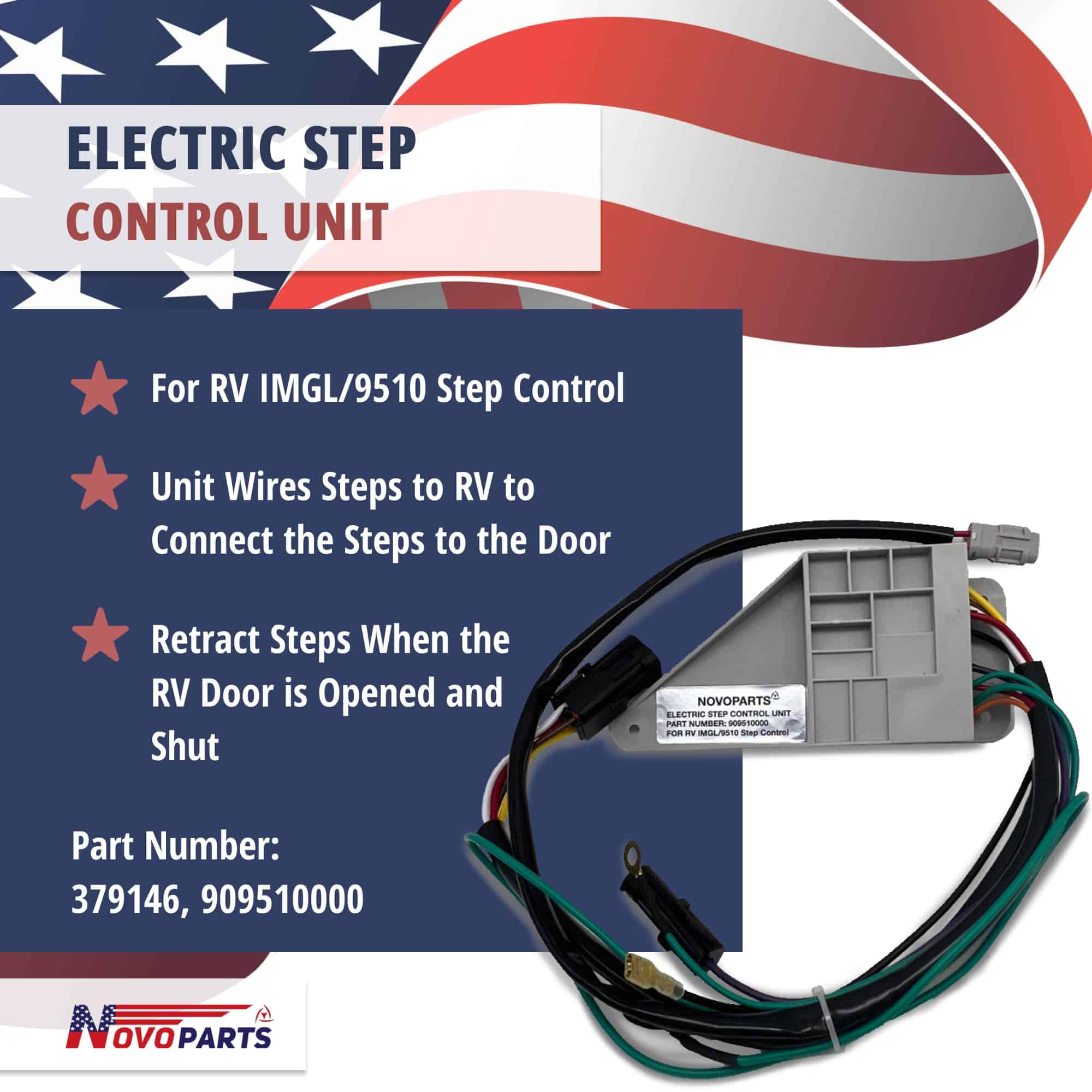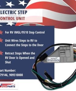 ESPECIFICACIONES para Motor de Reemplazo para sus escalones eléctricos de RV: Números de Parte 379147, 369506, 1820124, 214-1001, 1101428, 366043 El motor proporciona energía para extender y retraer sus escalones La función de apagado automático retrae los escalones si golpean un obstáculo durante la extensión Instalación sencilla en el mecanismo de enlace Hardware de montaje incluido Dimensiones: 7″ de largo x 3-7/8″ de ancho x 2″ de alto Voltaje: 12V ESPECIFICACIONES para Unidad de Control de Reemplazo 379146: Unidad de Control de Reemplazo 379146 para Escalones Eléctricos de RV 909510000 para IMGL/9510 Número de Parte: 379146, 909510000 Se ajusta a los escalones fabricados desde 2006 hasta la actualidad Unidad conecta los escalones al RV para conectar los escalones a la puerta. Retrae los escalones cuando se abre y cierra la puerta del RV.