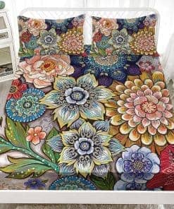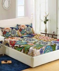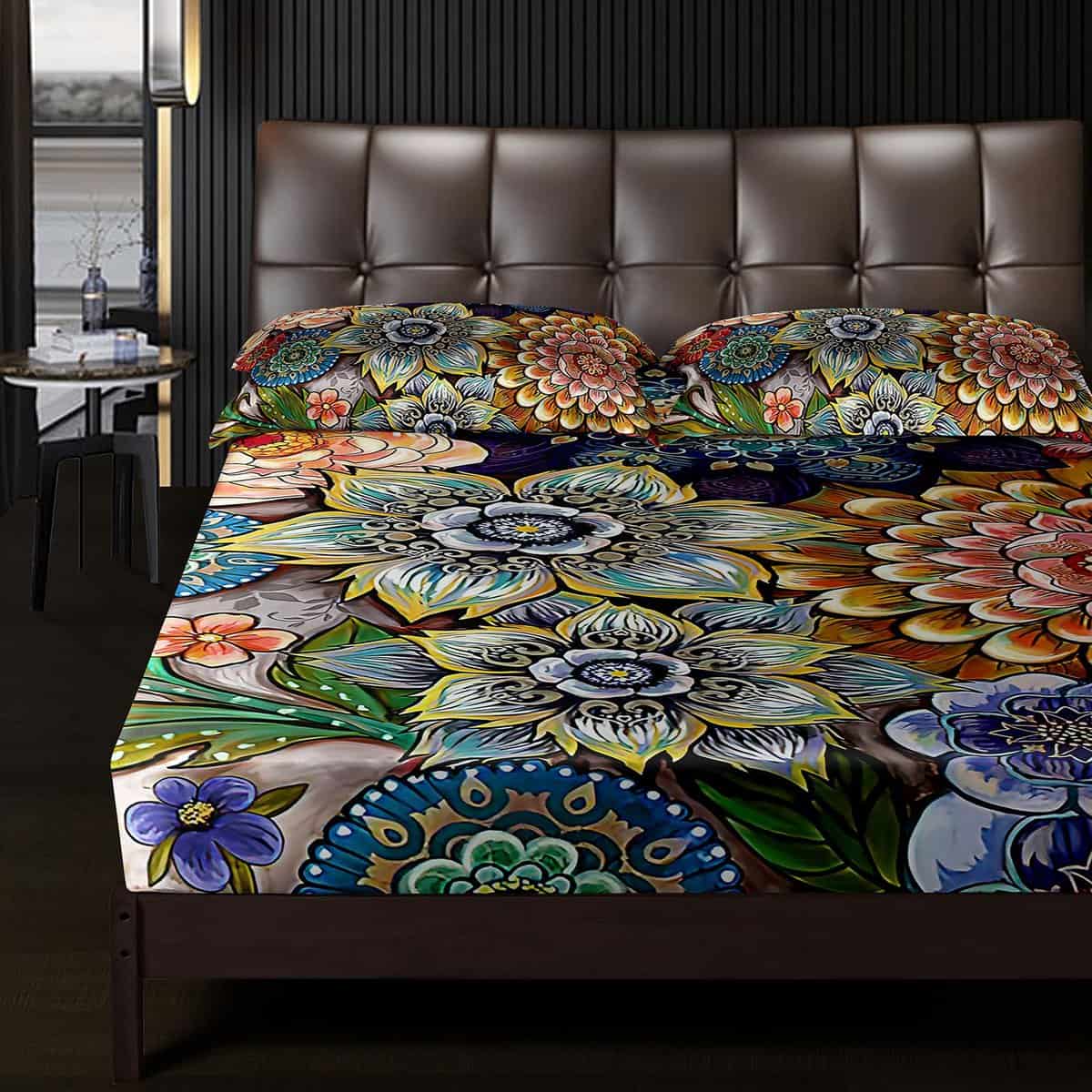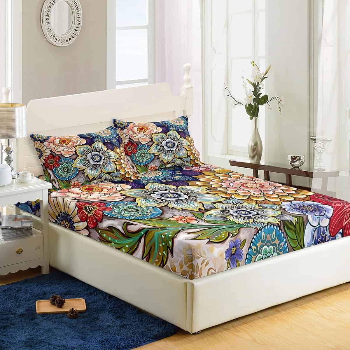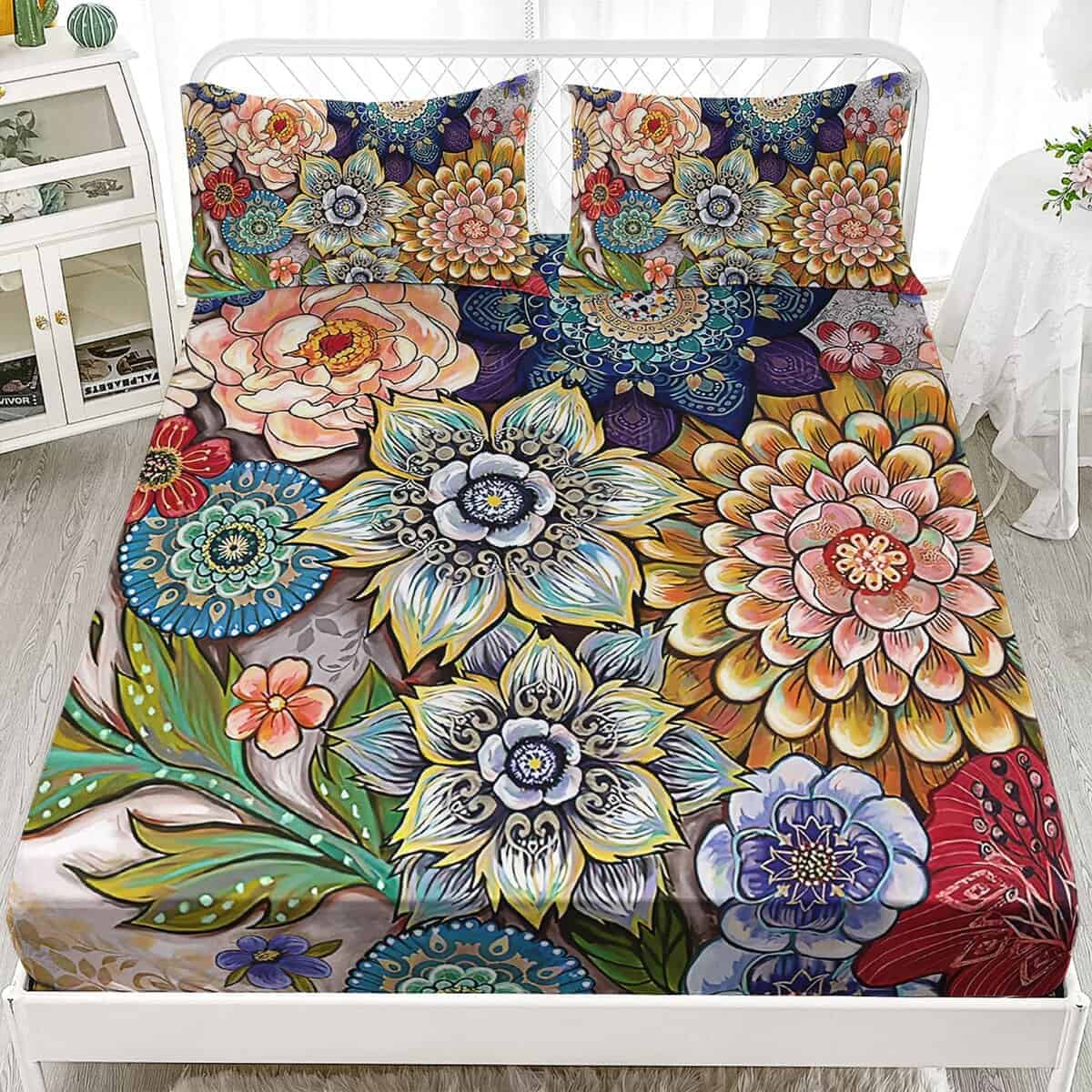 Nttopship Juego de Sábanas y Fundas de Almohada Boho Floral