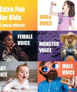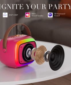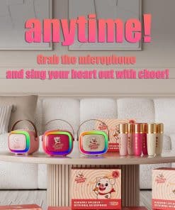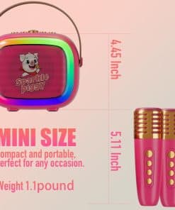 1. Esta mini máquina de karaoke es perfecta para fiestas, combina karaoke, altavoz portátil y luces de fiesta LED para entretenimiento sin fin. 2. Equipado con altavoces de 8W y 2 micrófonos inalámbricos, también cuenta con divertidas funciones de cambio de voz para mejorar tu experiencia de karaoke. 3. Con un sistema de reproducción multifuncional, soporta conectividad Bluetooth 5.3, compatible con iPhones, teléfonos Android, tabletas y más. También ofrece múltiples opciones de conexión, incluyendo tarjeta TF, USB y entradas AUX. 4. Disfruta de un uso prolongado con hasta 4-6 horas de reproducción continua. El diseño intuitivo de botones y la función de cancelación de voz hacen que sea fácil para los niños usarlo, permitiendo que todos disfruten de su voz de canto auténtica. 5. El regalo perfecto para todas las ocasiones: Empaquetado en una exquisita caja de regalo, nuestra mini máquina de karaoke con 2 micrófonos inalámbricos es ideal para KTV, fiestas, viajes y más. Estos altavoces Bluetooth y micrófonos son regalos perfectos para cumpleaños, Navidad y otras fiestas, ofreciendo una maravillosa experiencia de canto tanto para reuniones en interiores como en exteriores!