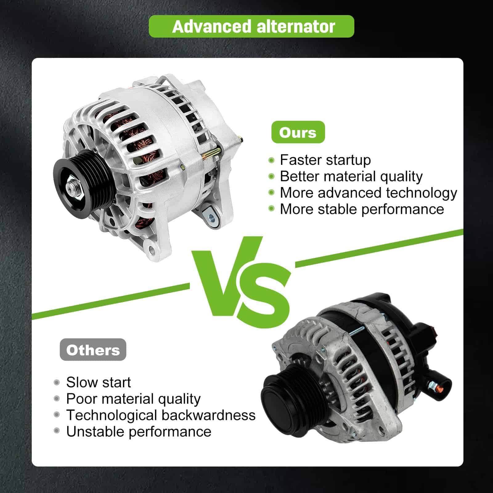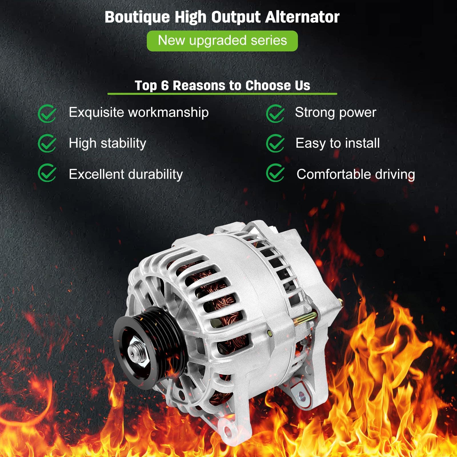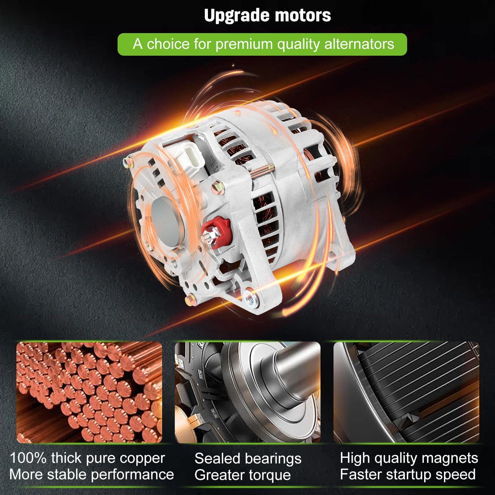 110 Amperios/12 Voltios, CW, Polea de 6 ranuras, Conector a las 11:00 en punto