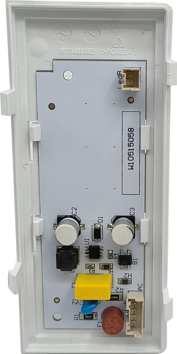 Controlador de luz LED para refrigerador Whirlpool W10515058. Compatible con modelos Whirlpool WRS322FDAB, WRS322FDAD, WRS322FDAM, WRS322FDAT, WRS322FDAW, WRS322FNAB, WRS322FNAE, WRS322FNAH, WRS322FNAM, WRS325FDAB, WRS325FDAD, WRS325FDAM, WRS325FDAT, WRS325FDAW, WRS325FNAB, WRS325FNAE, WRS325FNAH, WRS325FNAM, WRS331FDDB, WRS331FDDM, WRS331FDDW, WRS335FDDB, WRS335FDDM, etc. Compatible con modelos de refrigerador Kenmore 106.41122210, 106.41122211, 106.41122212, 106.41122213, 106.41123210, 106.41123211. Si compras este LED y aún no funcionan, significa que tienes un cortocircuito con otros dos LEDs. Necesitas comprar 2 piezas de W10515057 y reemplazar los tres para que los LEDs funcionen correctamente.