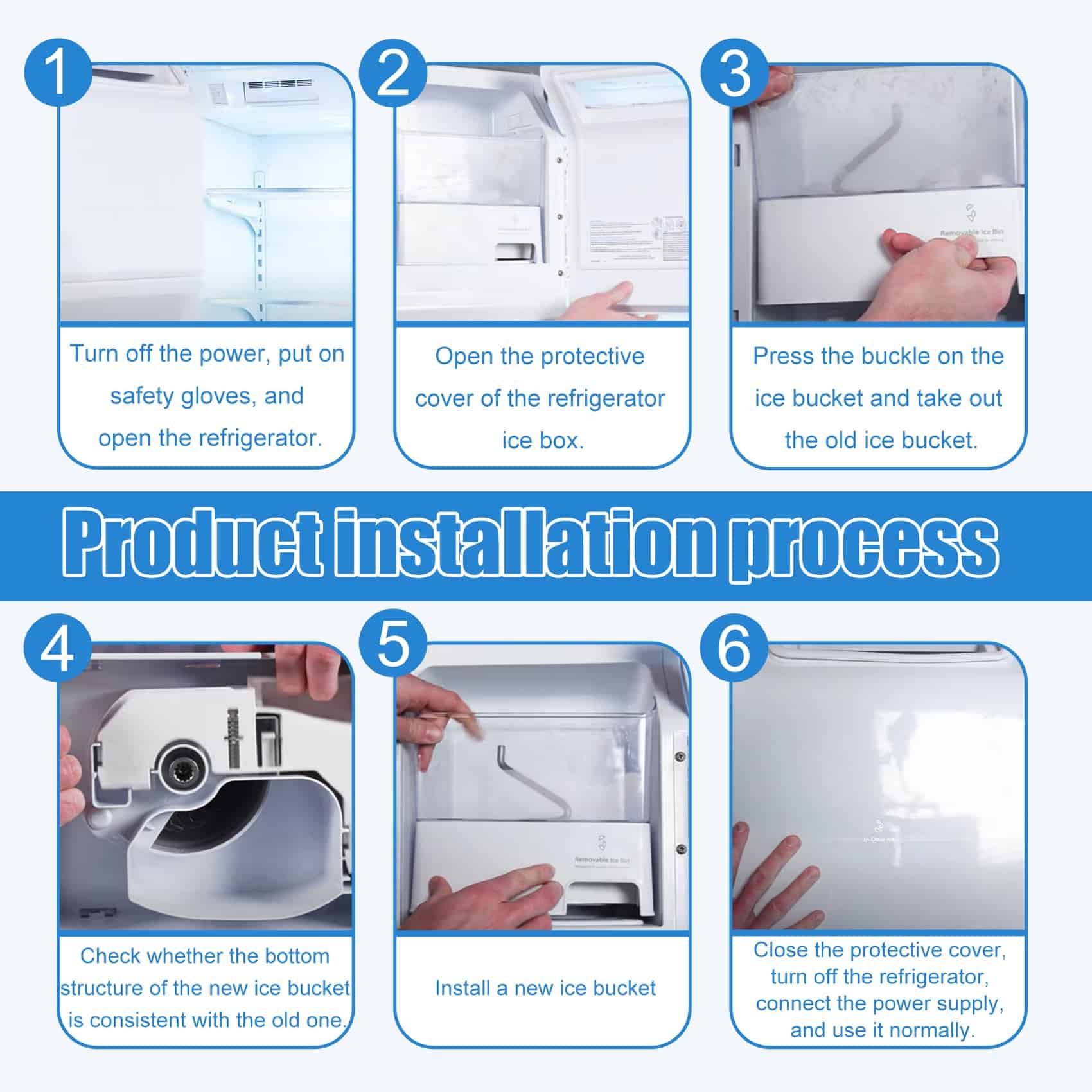 7. Nota calurosa: Para evitar dañar el contenedor de hielo, por favor revisa el cubo de hielo de vez en cuando para asegurarte de que no hay grandes bloques de hielo endurecido; Por favor, apaga la energía antes de la instalación y la inspección, y usa guantes aislantes para prevenir lesiones. Este ensamble de cubo de hielo W10347093/WPW10347093 está construido para resistir los ciclos constantes de congelación y descongelación dentro de tu refrigerador whirlpool, Este contenedor de hielo W10347093/WPW10347093 asegura un ajuste perfecto y un rendimiento óptimo, proporcionando un suministro constante de cubos de hielo fresco y crujiente siempre que los necesites.