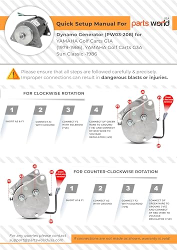 Nuestro generador de arranque de alta calidad ayuda a que sus carritos de golf funcionen suavemente y más rápido. El generador de arranque se adapta a los carritos de golf YAMAHA G1A (1979-1986), YAMAHA G3A Sun Classic -1986, HITACHI, ARROWHEAD. Compatible con modelos de carritos de golf Yamaha (modelos de gas) G1A (1979-1986) y YAMAHA Golf Cart G3A Sun Classic -1986. Puede ser necesario reutilizar la polea de la unidad antigua, ya que la polea proporcionada en esta unidad puede que no se adapte a todas las aplicaciones. Parts World USA obtiene piezas de automóviles de calidad superior de fabricantes de todo el mundo y las lleva a su puerta. Todos nuestros productos son fabricados recientemente, directamente desde la fábrica, y se adaptarán a su vehículo directamente.