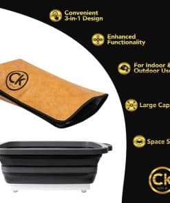 3. SISTEMA DE DRENAJE FUERTE Y A PRUEBA DE FUGAS – Di adiós a los derrames desordenados con nuestro cubo de preparación para BBQ plegable que cuenta con un seguro tapón de drenaje. Utiliza este colador plegable para marinar fácilmente carne, lavar frutas, verduras y platos sin fugas. El fuerte tapón de nuestra tina de platos plegable evita que el agua se filtre, convirtiendo nuestros regalos para exteriores en un artículo imprescindible para cocinar al aire libre y preparar comidas.
