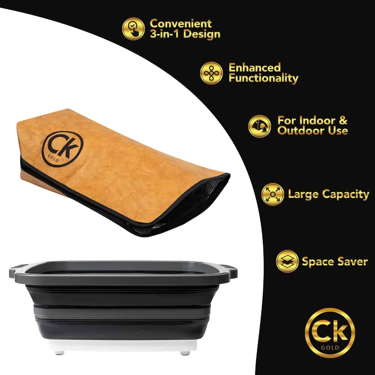 Disfruta de la conveniencia de un cubo de preparación para BBQ plegable que se transforma en un contenedor marinador con tapa, una resistente tabla de cortar, o una cesta de lavado con un fuerte tapón de drenaje, perfecto para parrilla, camping, picnics y tailgating.