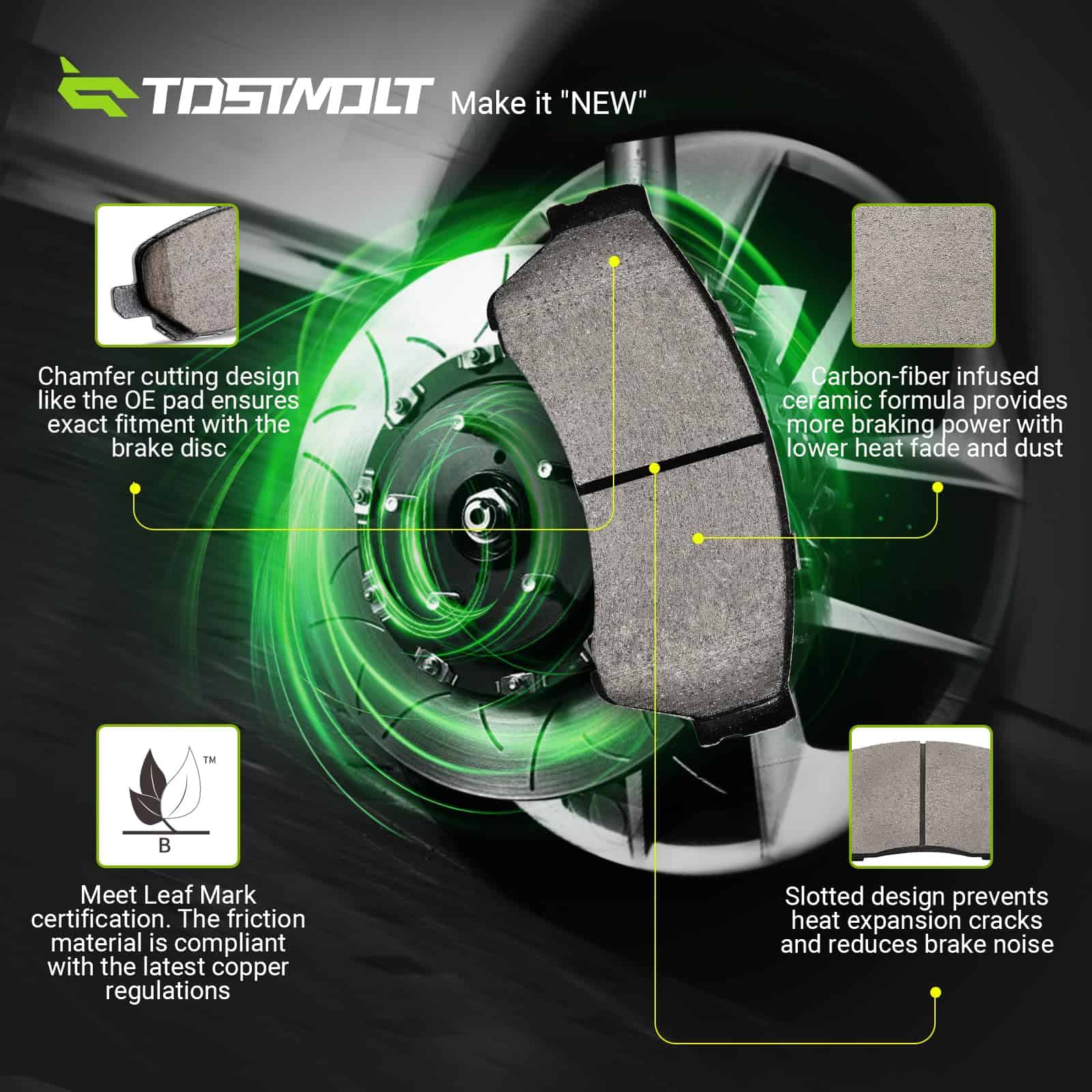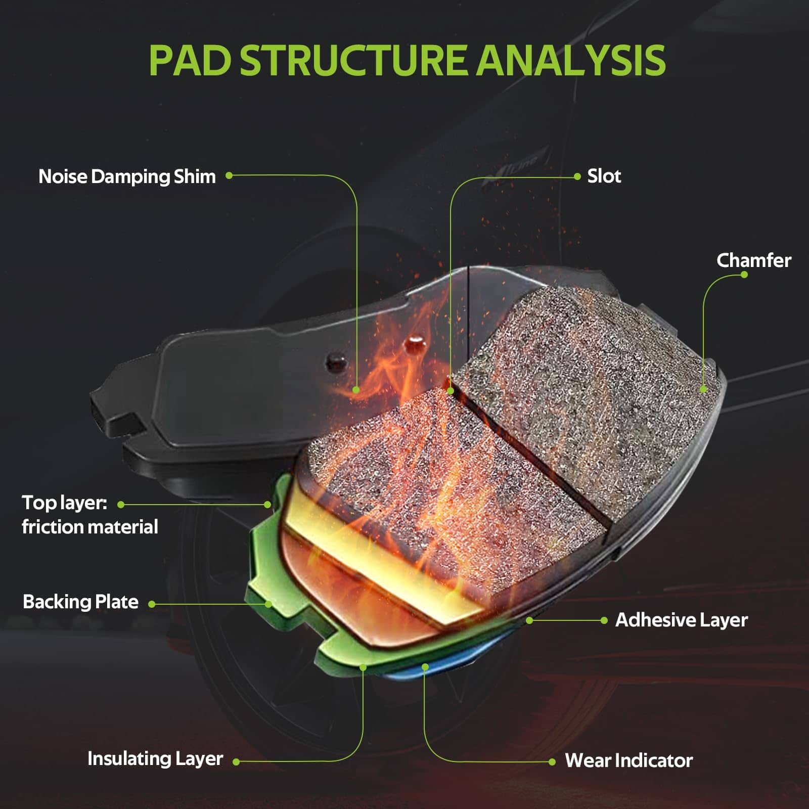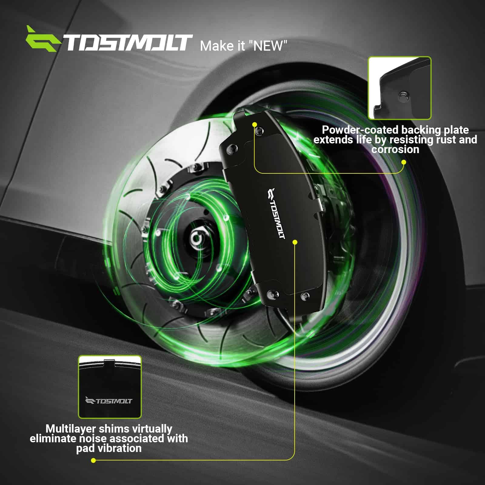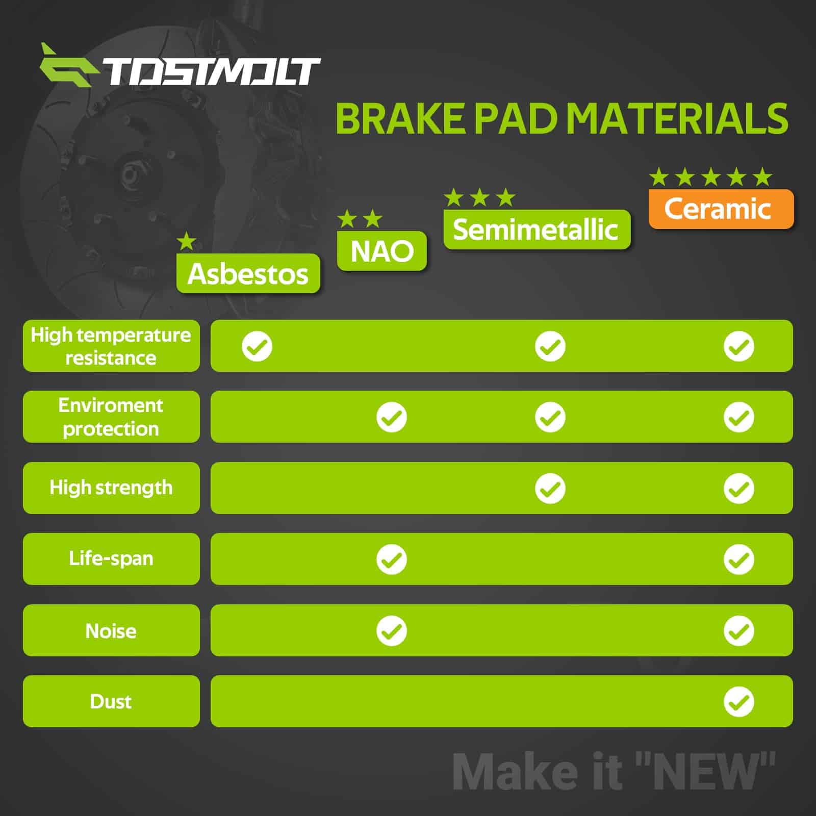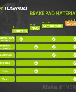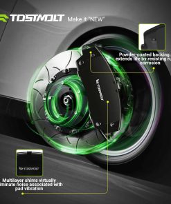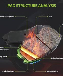 4. Alto rendimiento y vida útil prolongada – La fórmula de cerámica infusionada con fibra de carbono proporciona más potencia de frenado con menor degradación por calor; La placa de respaldo revestida en polvo prolonga la vida útil al resistir el óxido y la corrosión. Se ofrecerá un intercambio sin problemas si hay algún defecto de fabricación.