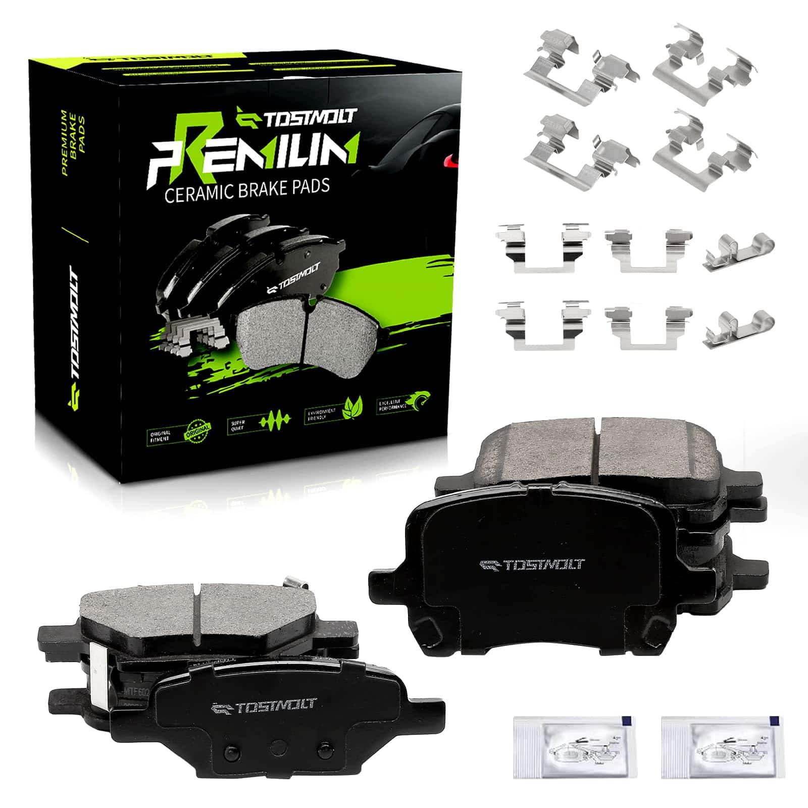 2. El paquete incluye: juego completo de 8 pastillas de freno de cerámica para la parte delantera y trasera (incluido el kit de hardware para una instalación fácil y una operación más segura de las nuevas pastillas. Las abrazaderas antiguas pueden deformarse, aflojarse o oxidarse, lo que causará problemas como ruido anormal, eficiencia de frenado reducida, desgaste desigual de las pastillas de freno y el disco, etc. Proporcionamos nuevas abrazaderas de freno para eliminar estos posibles riesgos y garantizar una operación suave y un rendimiento de frenado confiable).