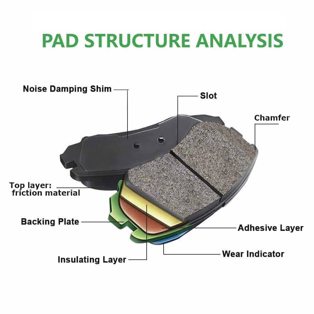 Las almohadillas tienen placas de respaldo cortadas o recortadas con precisión y almohadillas mecánicamente adosadas, que garantizan un ajuste correcto en la pinza y prácticamente eliminan el ruido asociado con la vibración de la almohadilla.