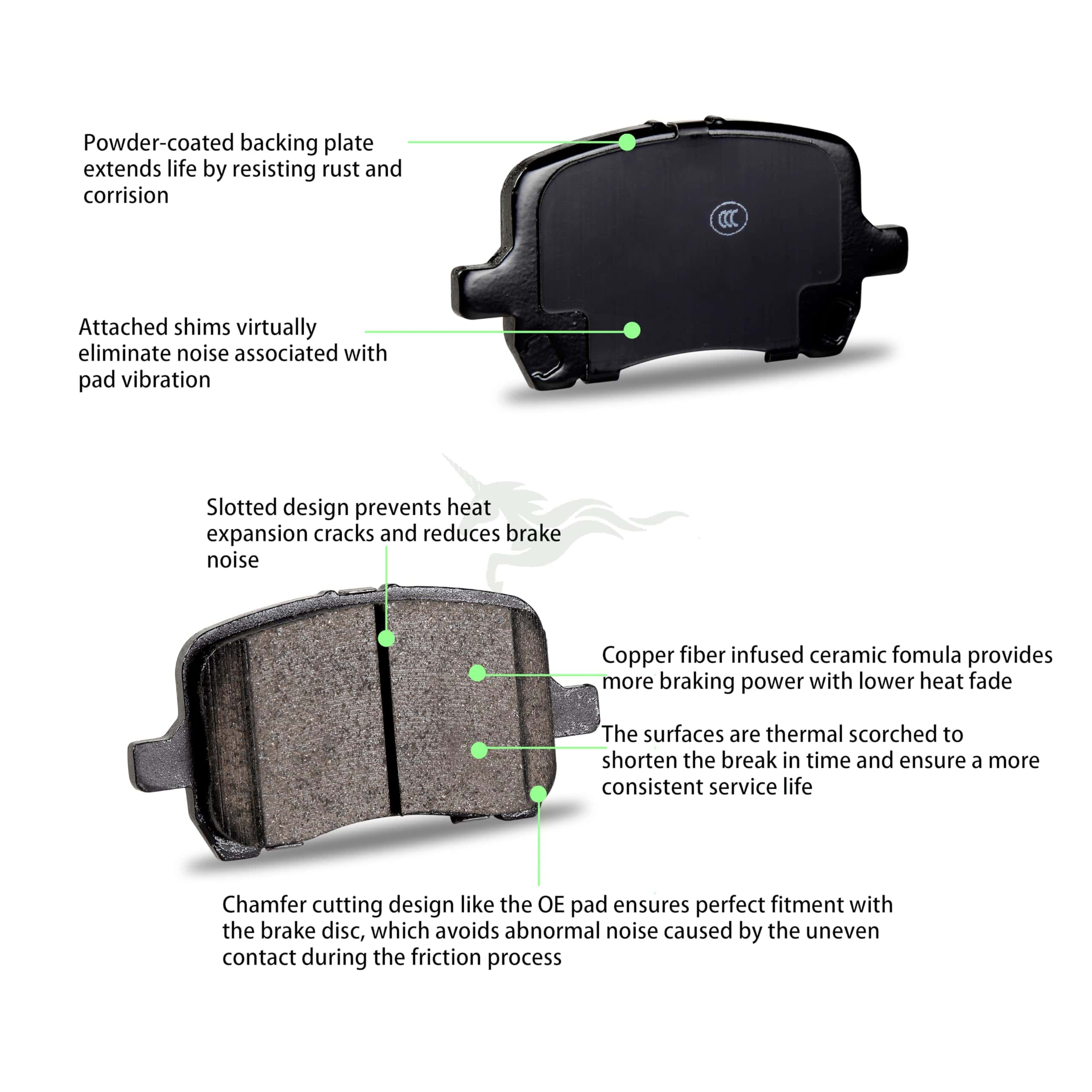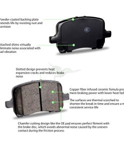 Las almohadillas de cerámica no solo proporcionan una fuerza de frenado más fuerte que las semimetálicas u otros materiales, sino también con menos ruido. Mejore la seguridad y el rendimiento de conducción.