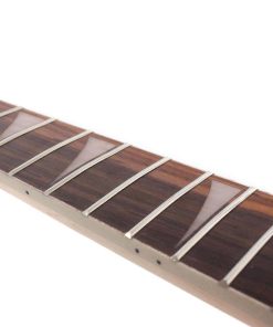 Madera de Mango de Canadá Maple. Diapasón de Palisandro. Incrustaciones de Aleta de Tiburón. Longitud de Escala de 25-1/2 pulgadas. Ancho de la Cejilla de aproximadamente 42.5mm. Ancho en el Talón de 56mm+-0.5mm. Trastes de Níquel/Plata de 24 Trastes. Ajuste de Varilla de Truss en la Pala.