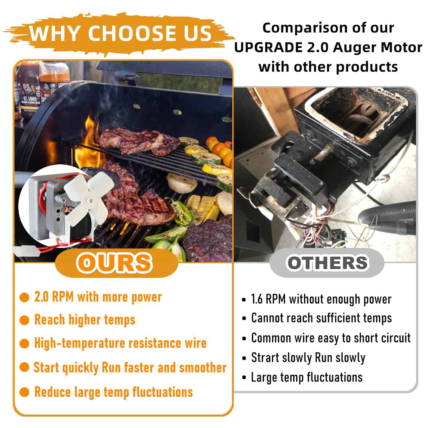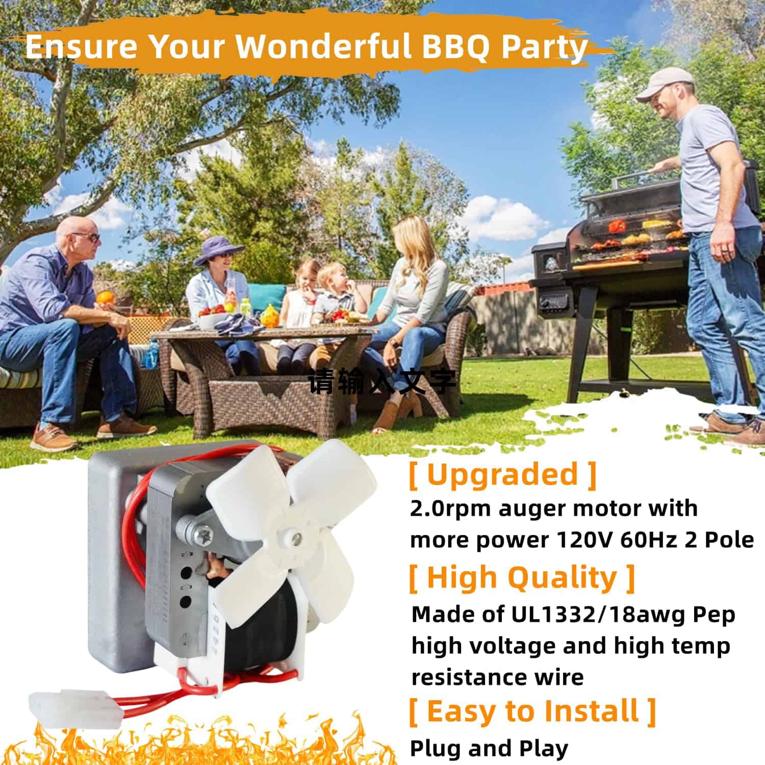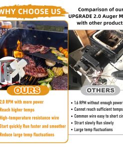 Nuestra garantía de satisfacción del cliente del 100% asegura su tranquilidad. No dude en contactarnos si tiene alguna pregunta o inquietud, estamos aquí para brindarle un servicio excepcional. Aproveche al máximo su parrilla de pellets con el Motor del Tornillo Sin Fin 2.0RPM actualizado y disfrute de resultados de cocción perfectos cada vez.
