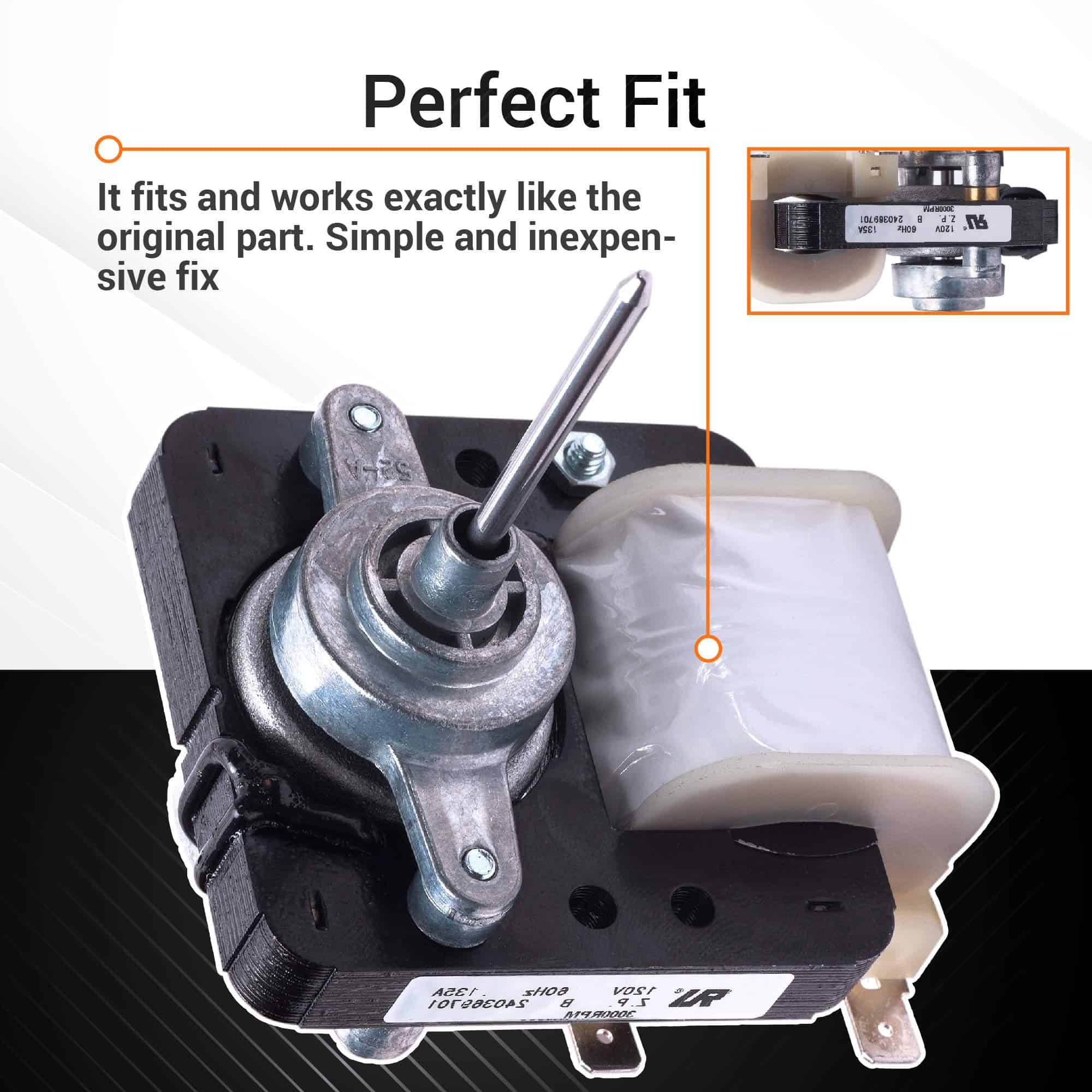 Especificaciones: El Motor del Ventilador del Evaporador 240369701 hace circular el aire a través del compartimento de alimentos para una refrigeración eficiente en los refrigeradores. El evaporador se encuentra en la parte posterior del congelador y hace circular el aire sobre las bobinas del refrigerador. El motor del ventilador del evaporador en su refrigerador debe reemplazarse si la sección del refrigerador está muy cálida, la sección del congelador está muy cálida o el motor del evaporador hace ruidos fuertes o deja de funcionar por completo. Las herramientas utilizadas para esta reparación son un destornillador de 1/4 y pelacables. Por favor, tenga en cuenta: El motor ha sido actualizado por el fabricante. Consejo para detectar si el motor no funciona, a menudo si falla genera ruidos fuertes en el área del congelador. Por seguridad, asegúrese de que los alimentos estén almacenados de forma segura para que no se deterioren mientras la energía está apagada y recuerde desenchufar el refrigerador. Reemplaza los números de parte: AP4700070, PS3419839, 5303918549, 240315803, 240369701. Funciona con la mayoría de las marcas principales: Frigidaire, Kenmore, Westinghouse, Gibson, Crosley, Electrolux, Uni. Soluciona los siguientes síntomas: Refrigerador muy cálido, ruidoso, demasiado cálido, sección del congelador demasiado cálida. Confíe en nuestro Motor del Ventilador del Evaporador 240369701 para obtener una combinación inigualable de durabilidad, funcionalidad conveniente y excelente relación calidad-precio. ¡Haga clic en ‘Agregar al carrito’ ahora!
