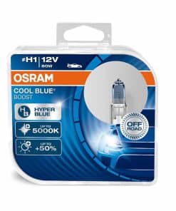 Cool blue boost convence con luz halógena azul hiper y altas temperaturas de color de hasta 5,000 K. Las lámparas para todoterreno generan hasta un 50% más de luz en comparación con otras bombillas para automóviles halógenas recubiertas de azul.