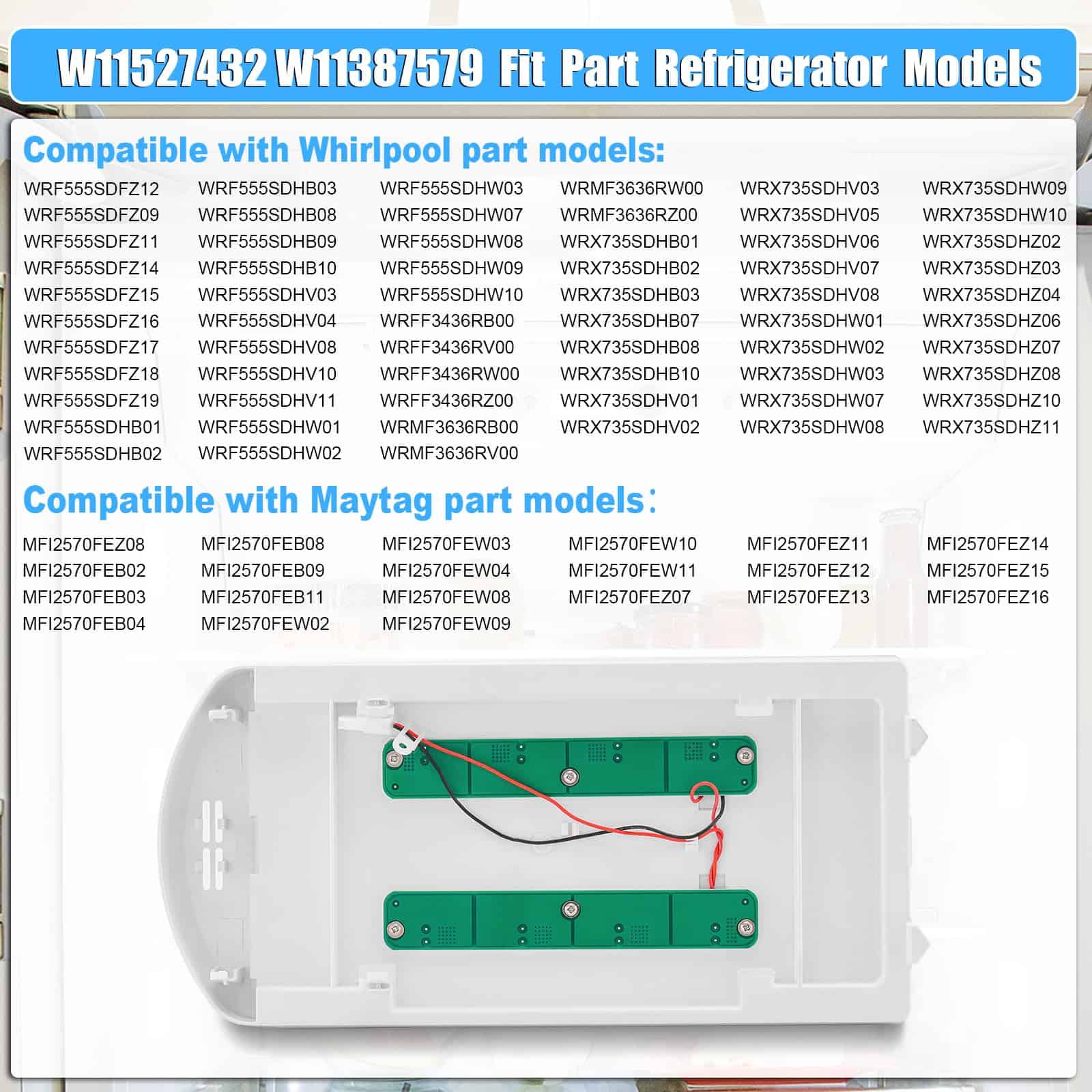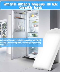 Reemplace la luz de su refrigerador con facilidad y eficacia con este modelo W11527432 W11387579. Compatible con una amplia gama de modelos de refrigeradores Whirlpool y Maytag, esta luz LED es la solución perfecta para restablecer la iluminación en su electrodoméstico. La instalación es sencilla y rápida, y pronto disfrutará de una iluminación brillante y clara en su refrigerador. Asegúrese de verificar la compatibilidad con su modelo específico antes de realizar la compra. ¡Ordene ahora y recupere la claridad en su refrigerador!