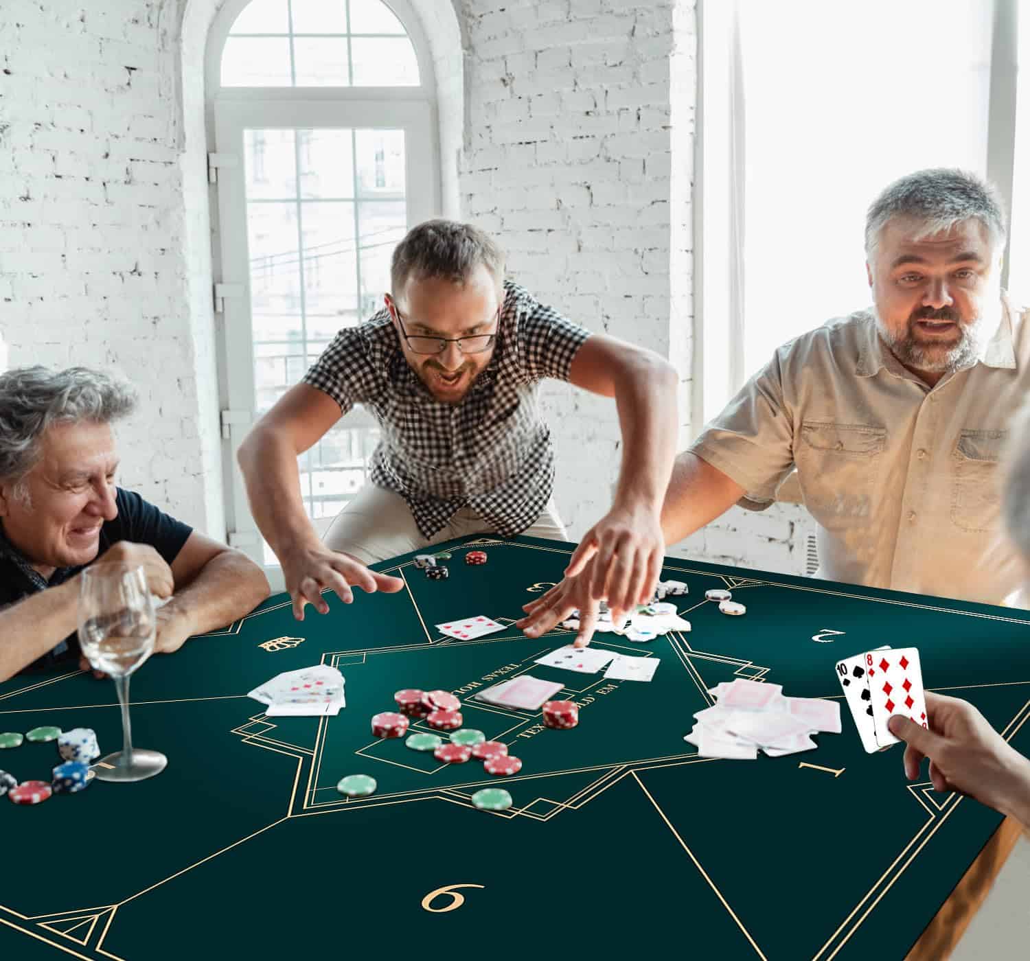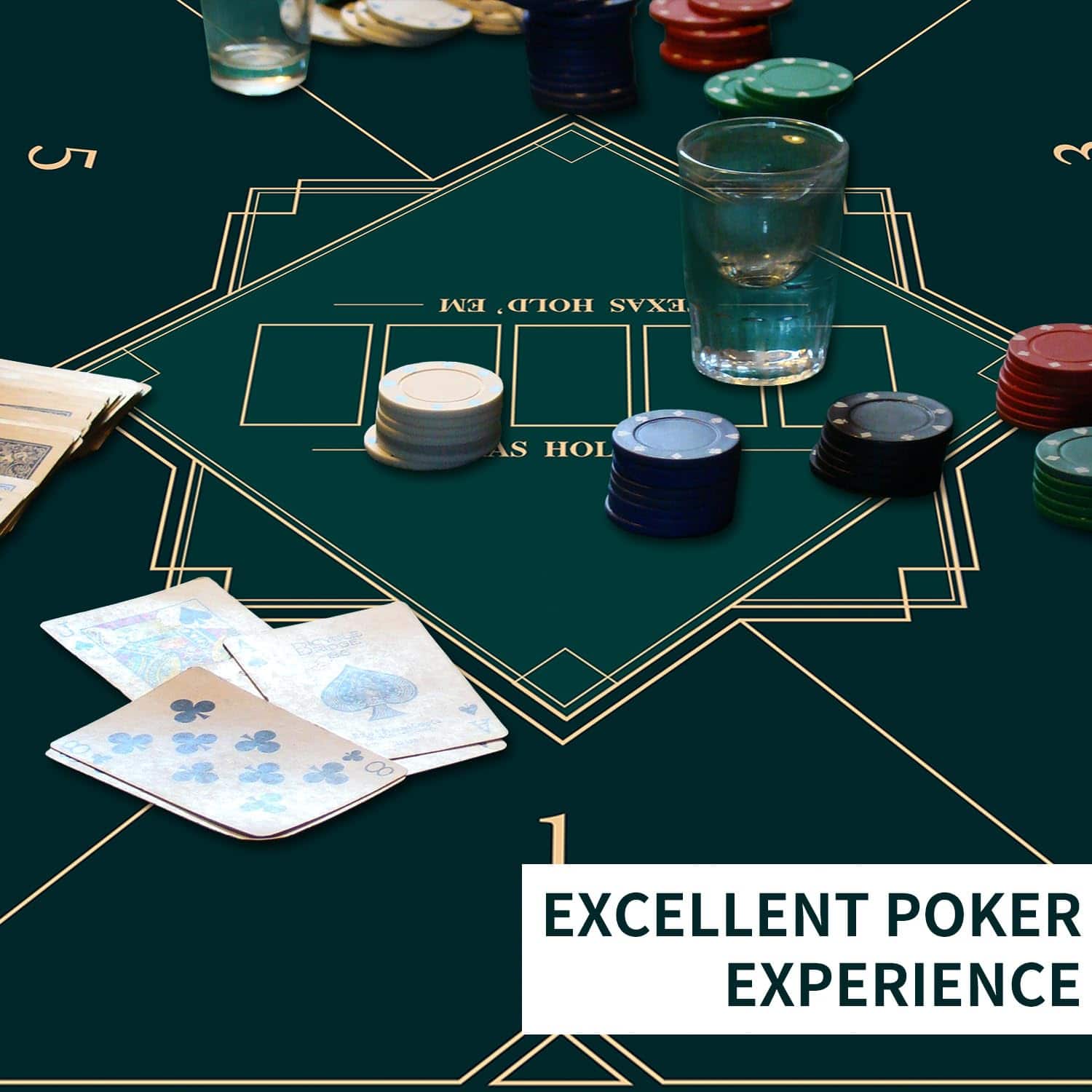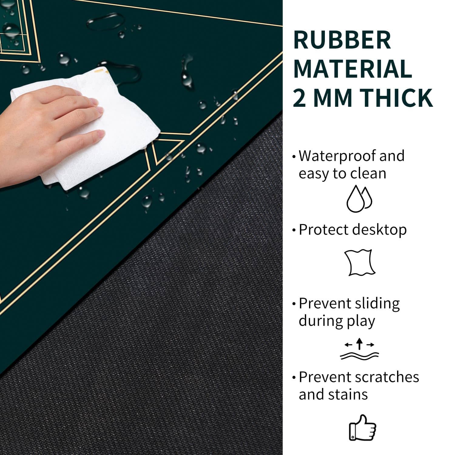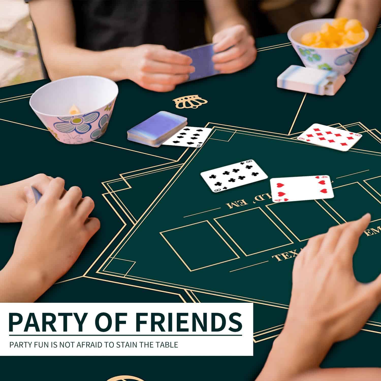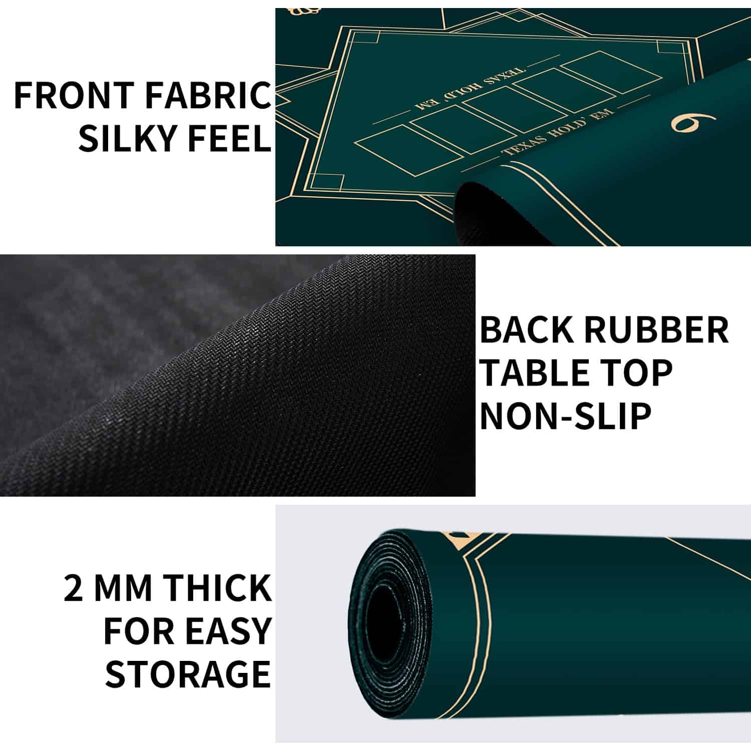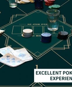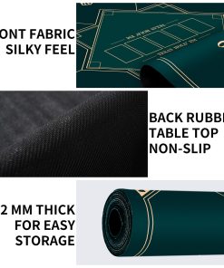 Tapete de poker portátil con diseño plegable de 24/31/39/47/55 pulgadas para jugar a Texas Hold’em. La base de goma antideslizante y la textura de espiga proporcionan estabilidad durante los juegos. Diseño impermeable y fácil de limpiar. Grosor de 2mm para mayor durabilidad y comodidad al jugar. Perfecto para juegos con varios jugadores. Añade diversión a tus reuniones familiares o fiestas.