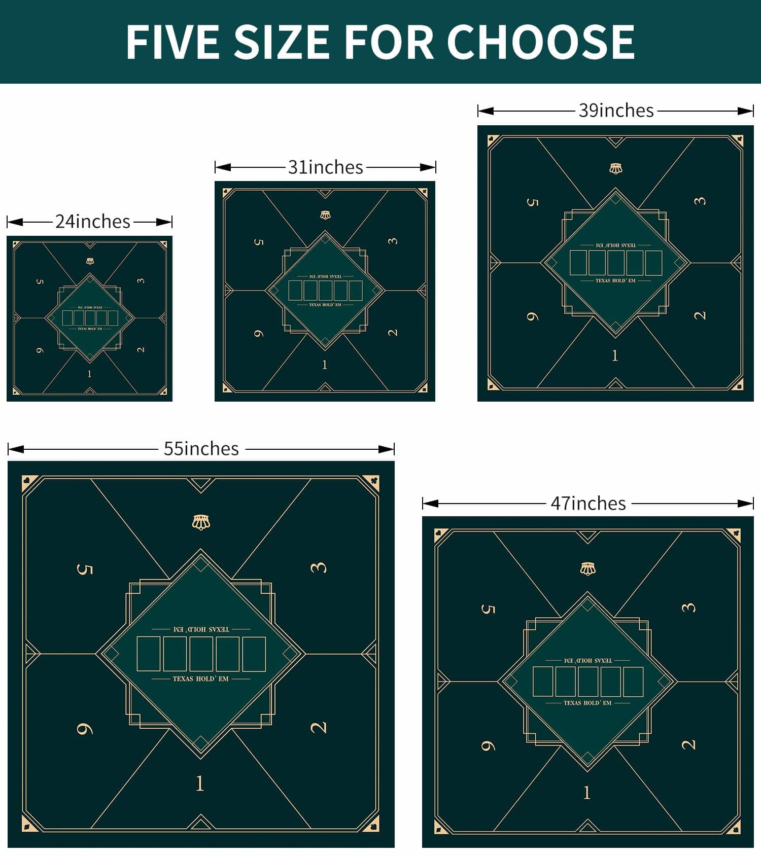 Nuventi Tapete de Poker Square Foldable de 24/31/39/47/55
