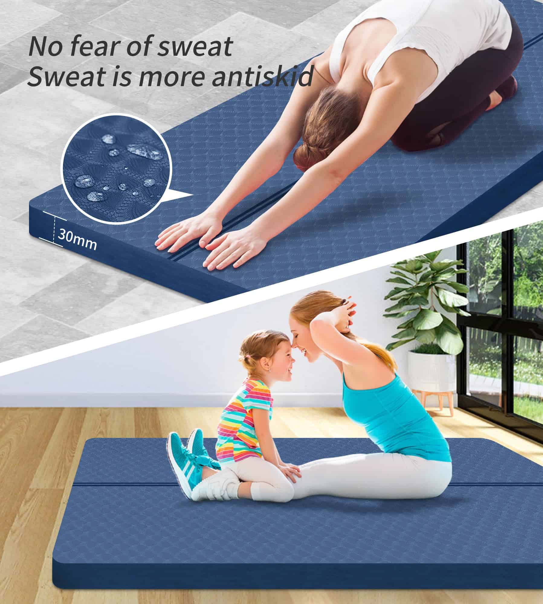 2. SUPERFICIE ANTIDESLIZANTE PARA MAYOR ESTABILIDAD: El tapete extragrande tiene una superficie texturizada que mejora la tracción para que puedas realizar cualquier movimiento con confianza. El diseño antideslizante ayuda en el equilibrio para mantener posturas por mucho más tiempo y proteger tus articulaciones y rodillas sin comprometer el soporte o la estabilidad.