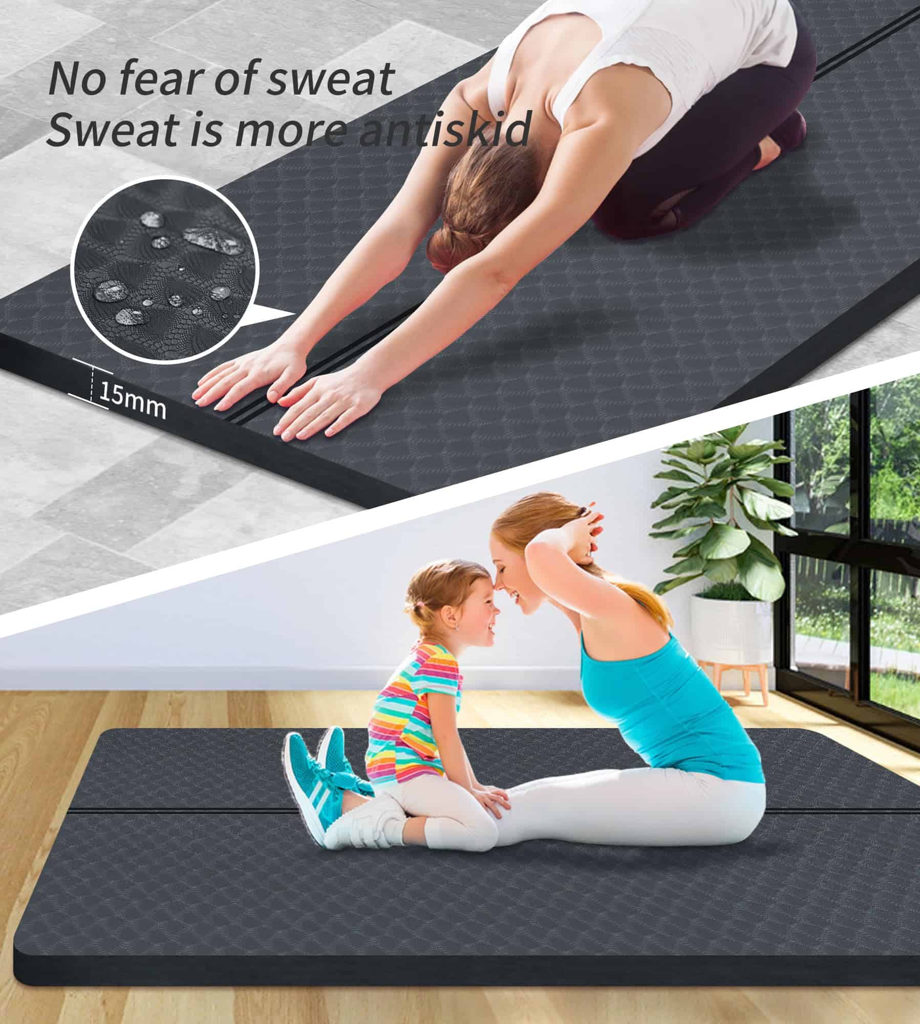 Nuvedi te presenta su Tapete de Ejercicio Grande, perfecto para realizar tu rutina de yoga, pilates, estiramientos, o ejercicios en el suelo. Hecho de material profesional de alta calidad y fabricado con tecnología de espuma de alta densidad, este tapete es resistente a desgarros y desgaste, de rápida recuperación, y especialmente diseñado para ofrecer comodidad y soporte durante tus entrenamientos en casa o en el gimnasio. El tapete es libre de PVC, no tóxico, ecológico y amigable con la piel, garantizando una experiencia segura y confortable. Su superficie antideslizante mejora la tracción para realizar cualquier movimiento con confianza, al tiempo que ayuda en el equilibrio para mantener posturas por mucho más tiempo y proteger tus articulaciones y rodillas. Con medidas de 72″x32″/78″x36″, este tapete ofrece más espacio que los tapetes estándar en el mercado, permitiéndote realizar una amplia gama de ejercicios de forma cómoda y segura. Además, gracias a su espesor de 15mm, 20mm, o 30mm, este tapete proporciona mayor soporte y protección para tus tobillos, rodillas, articulaciones y cuerpo en suelos duros, absorbiendo vibraciones y reduciendo el ruido. Mantén tu tapete limpio con un paño húmedo con agua fría y detergente suave, secándolo al aire. No lo expongas al sol por períodos prolongados. Ofrecemos 100% de satisfacción en nuestro servicio posventa, incluyendo devolución para un reembolso completo dentro de los primeros 30 días. Atrévete a probar el tapete de ejercicio de nuvedi y disfruta de una experiencia única en tu rutina de entrenamiento.