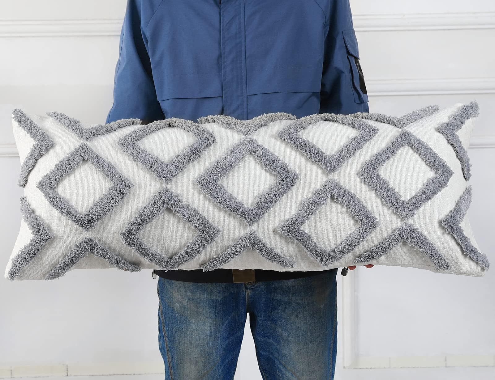 NUYECY Funda de Almohada Extra Larga con Patrón de Diamante