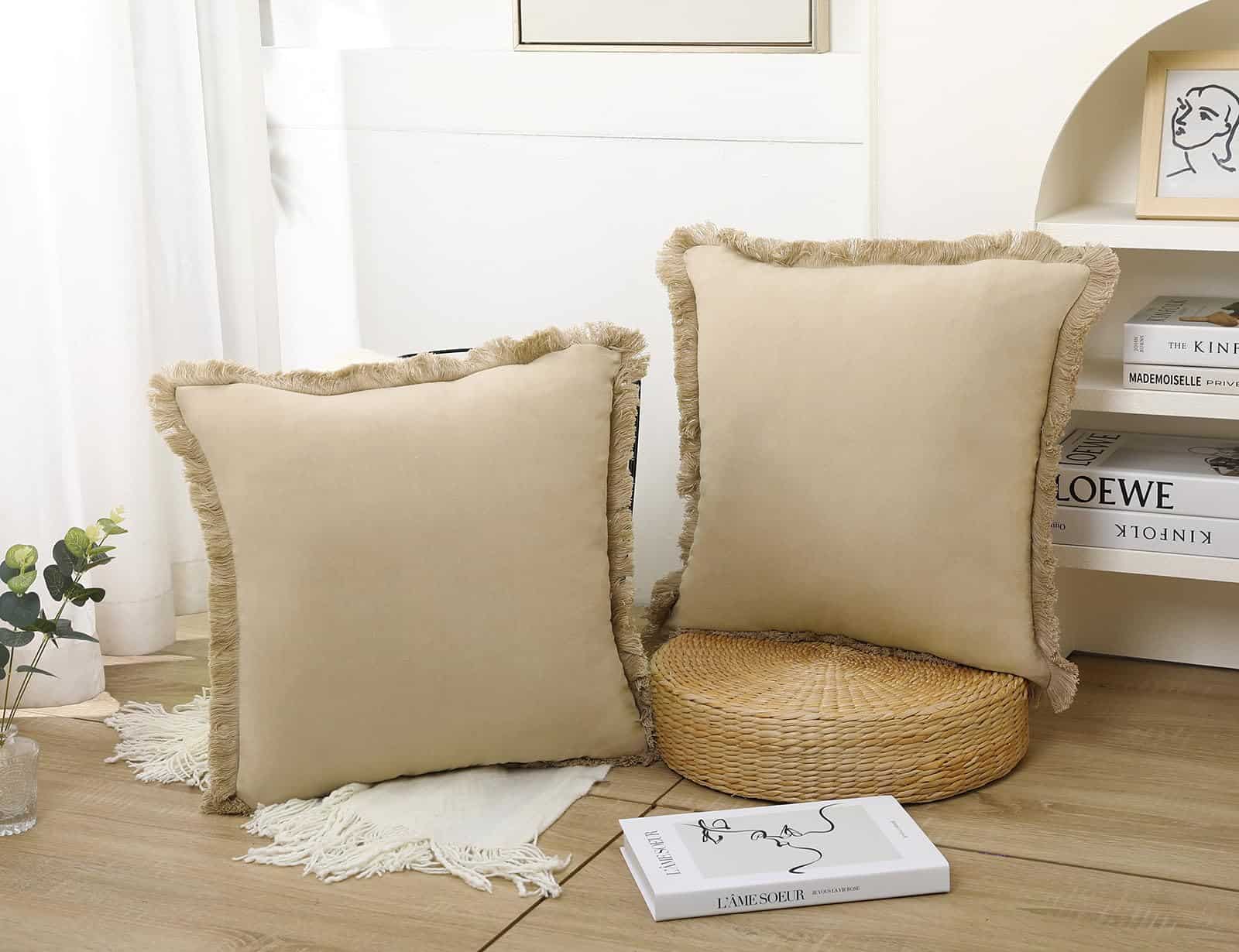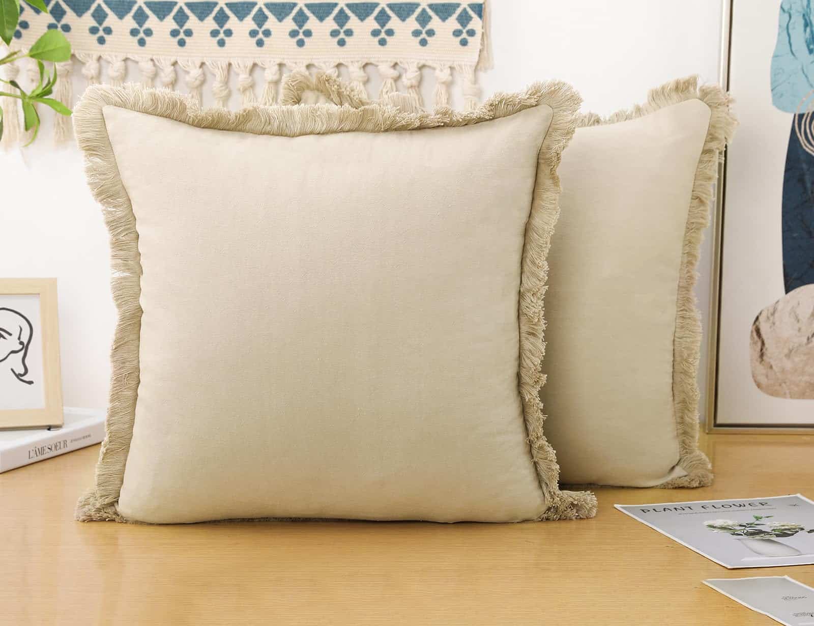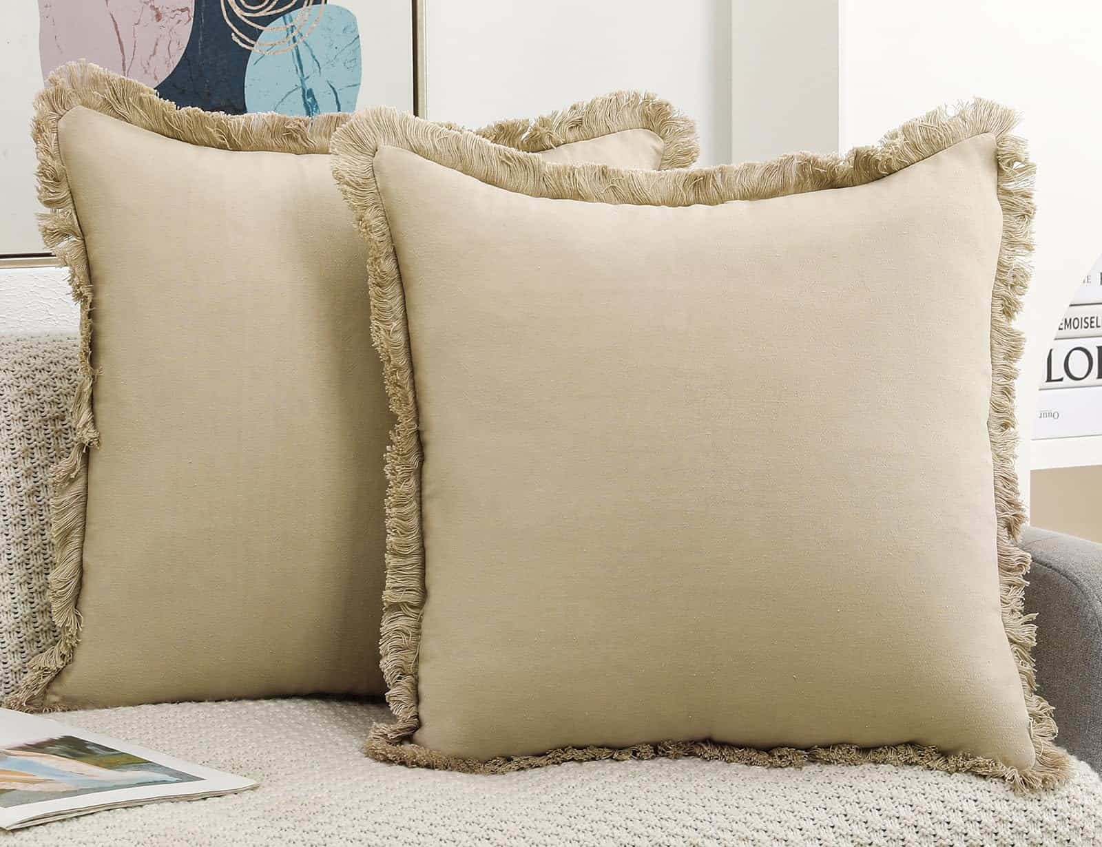 NUYECY Set de 2 Fundas de Cojín de Lino Natural con Flecos,