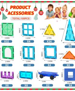 Baldosas Magnéticas de 100PCS Bloques de Construcción Sobredimensionados para Niños de 4-8 años, Juguetes de Construcción Educativos para niños pequeños de 3-5 años, Regalos de Cumpleaños para Niños y Niñas de 3 4 5 6 7 8+ años