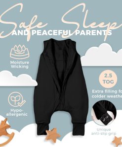 Conscientemente elegimos este tejido específico de 100% transpirable 1.0 TOG entre otros 100 para asegurarnos de que sea completamente lavable a máquina, le durará años (y con suerte más bebés) y mantendrá a su bebé a la temperatura adecuada durante las 4 estaciones. El diseño de pies separados ayudará a nuestros caminantes tempranos a moverse mejor sin tropezar y a nosotros, los padres, la capacidad de abrazarlos fuerte y de manera segura en nuestros brazos.