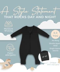 3. Adecuado para todas las estaciones – Nuestro súper transpirable saco de dormir para recién nacidos y niños pequeños es adecuado para todo tipo de clima. Para mantener los pies de tu pequeño calientes durante las noches más frías, simplemente voltea los puños del saco de dormir. Durante los días más cálidos, solo dóblalos para que los pies de tu bebé respiren.