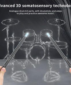La Batería Electrónica utiliza tecnología avanzada de somatosensación en 3D para simular las partes de una batería que, junto con las baquetas y los altavoces, te permiten tocar y practicar música increíble. El kit simulado incluye 1 tambor base, 3 toms, 1 platillo de choque, 1 platillo de ride, 1 hi-hat y 1 bombo tocado por un transductor de 2 pies.