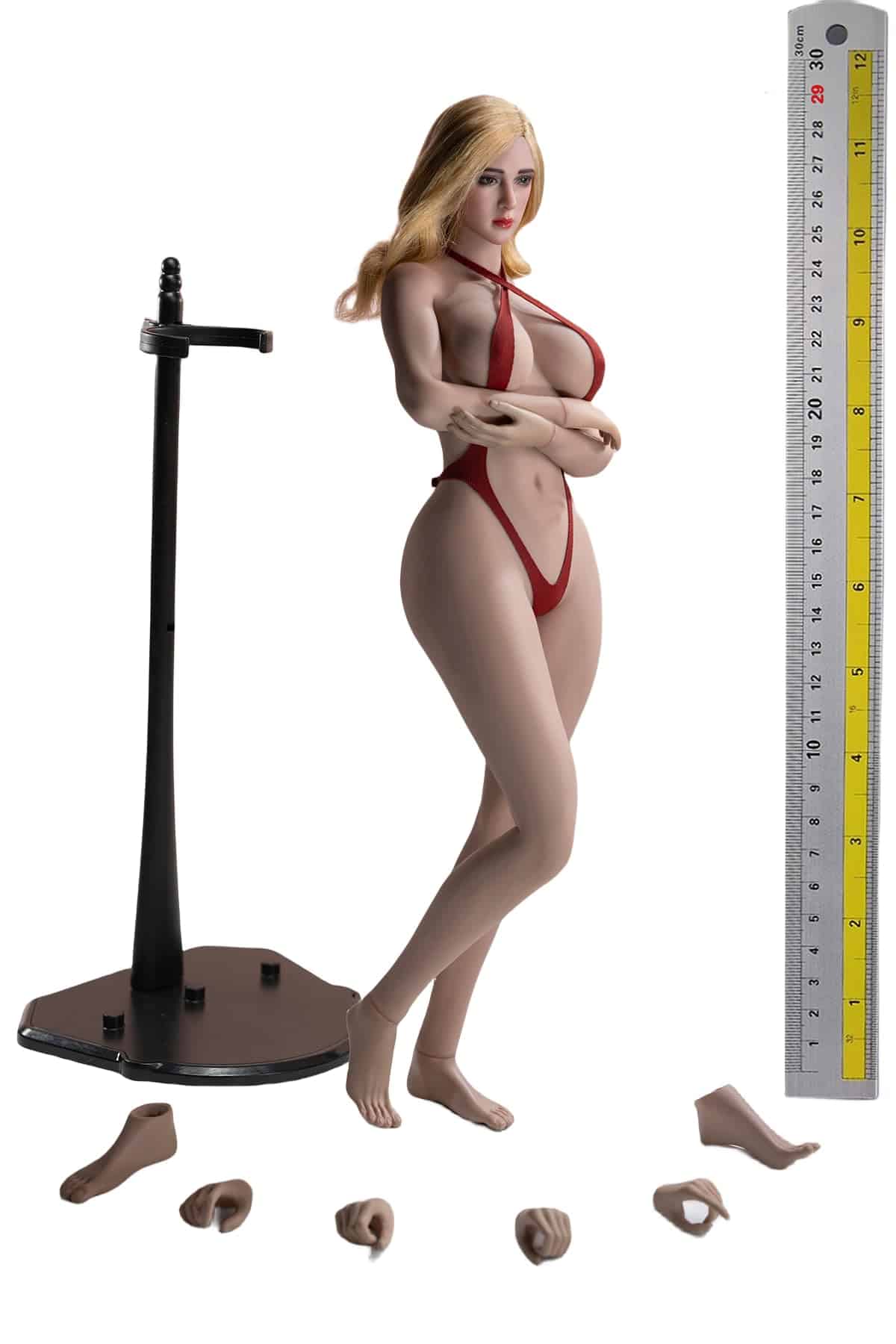 Cuerpo regordete de figura femenina a escala 1/6 súper flexible y duradero, con ropa de baño y pies desmontables. El paquete incluye: 1 cabeza esculpida, 1 cuerpo femenino supermovible y sin costuras de TBLeague, 3 pares de manos intercambiables, 2 pares de pies desmontables, 1 bikini (gratis), 1 base y soporte.